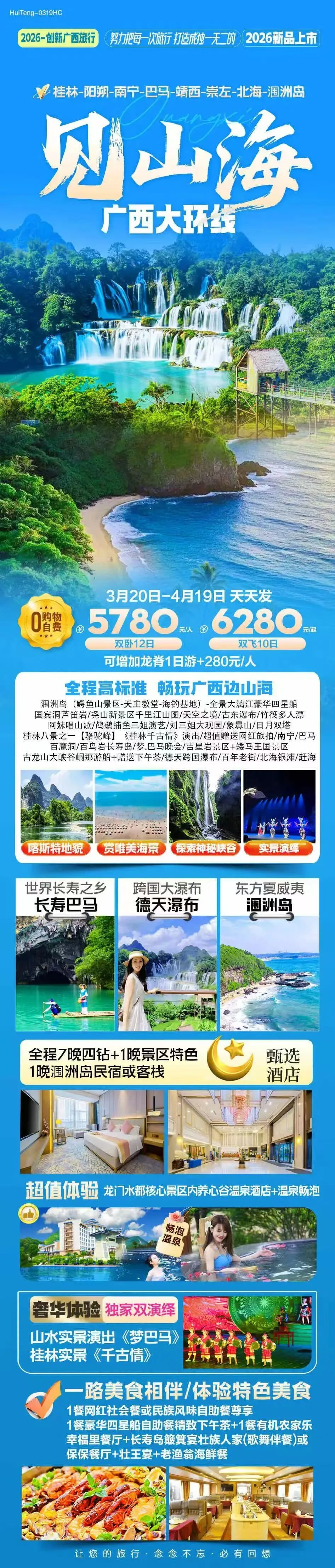 >【国内游-广西】桂林、阳朔,龙脊、南宁,巴马,德天,北海,涠洲岛,开启广西之旅