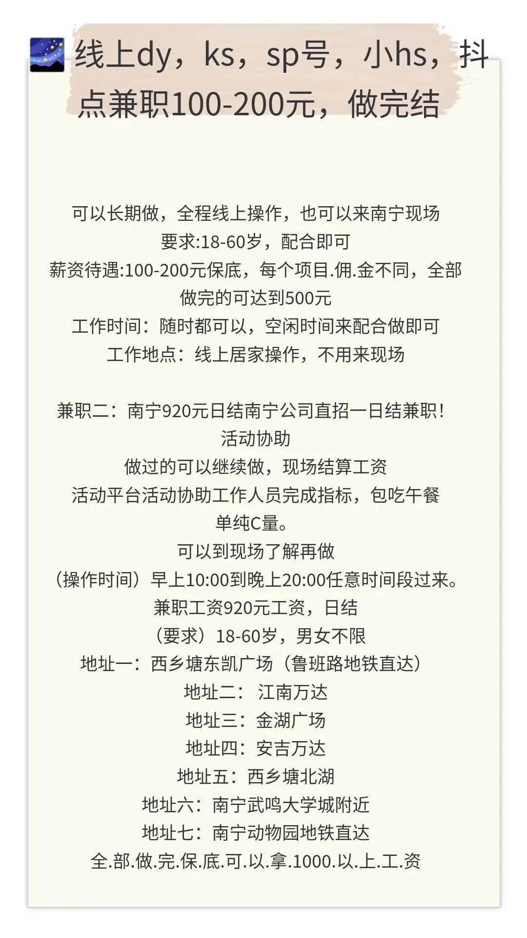 >3.27南宁兼职全职 -招聘