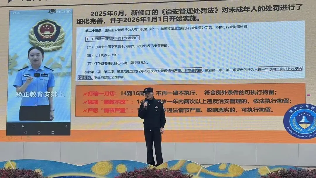 为进一步加强校园法治教育,预防和遏制校园欺凌,提升学生的安全防范与自我保护意识,南宁市新际路小学特邀南宁市公安局心圩派出所法治副校长曾业季警官,于3月16日、3月23日分别走进心圩校区和新际校区,开展以“守护青春 法治同行”为主题的法治宣讲活动。活动聚焦新修订的《中华人民共和国治安管理处罚法》中涉及未成年人的相关条款,为全校师生带来了一堂生动、实用的法治安全课。