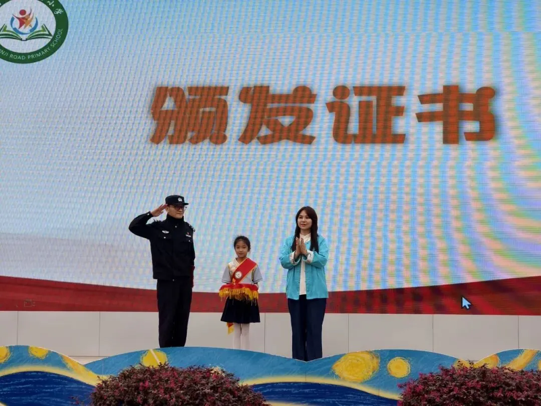 唐敏慧校长为曾业季警官颁发法治副校长证书,一纸证书既是认可与托付,也为校园法治教育常态化、专业化开展筑牢根基,搭建起校警联动开展法治教育的坚实桥梁。