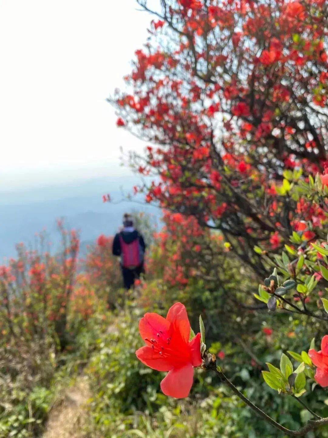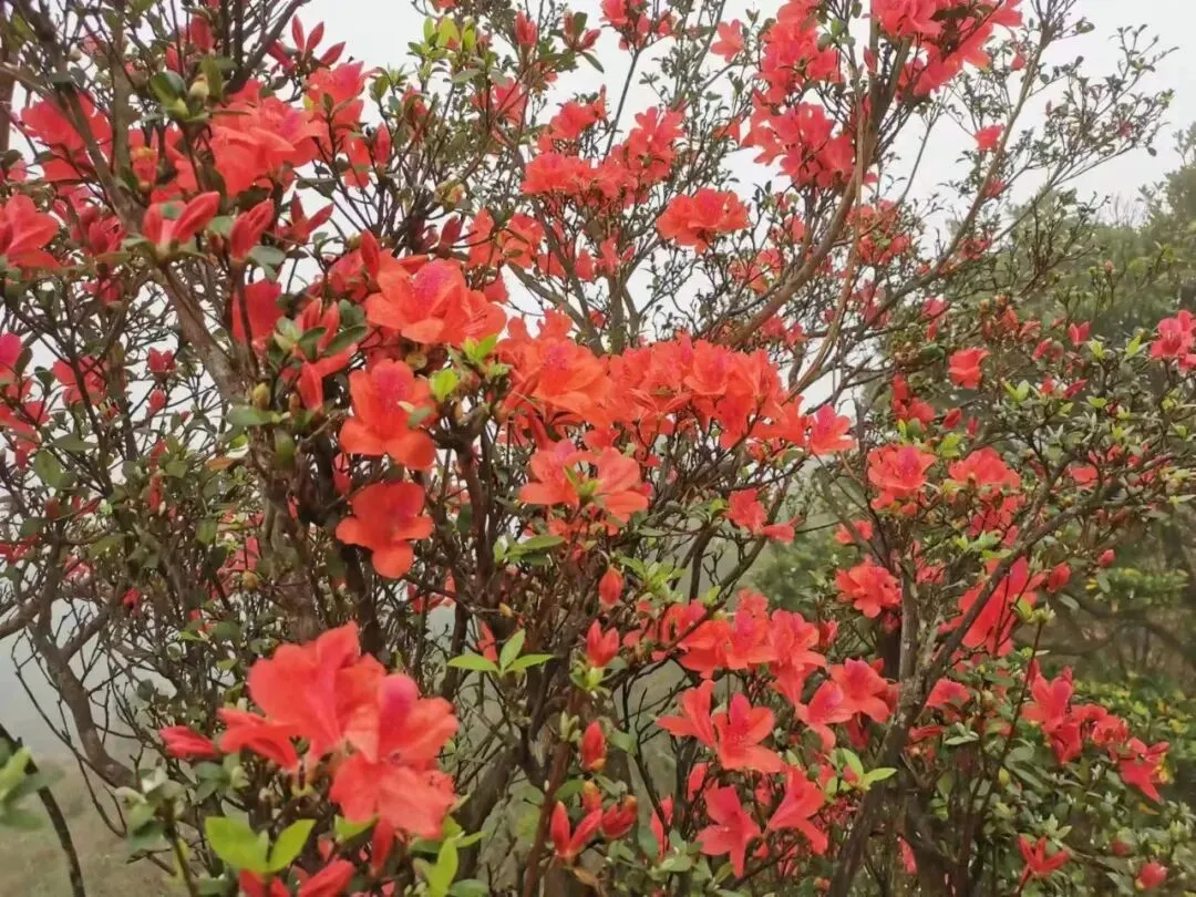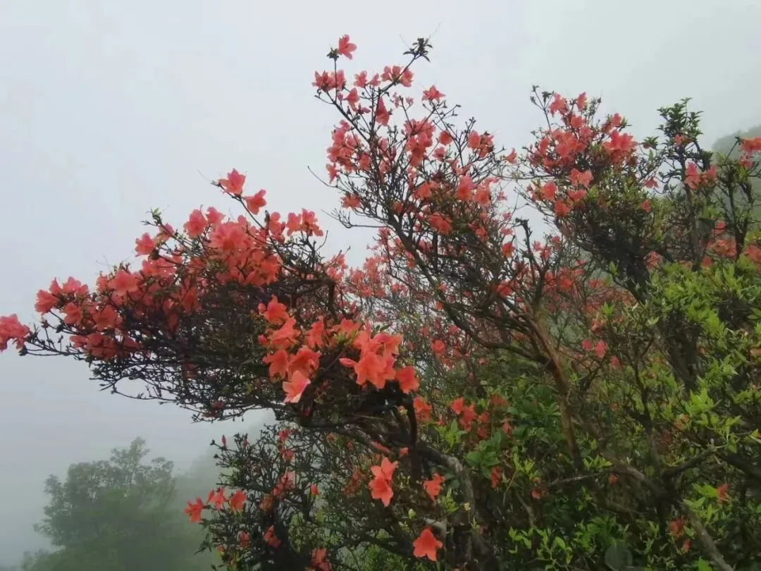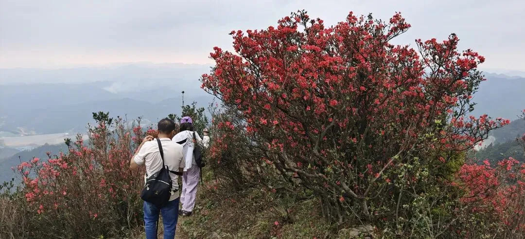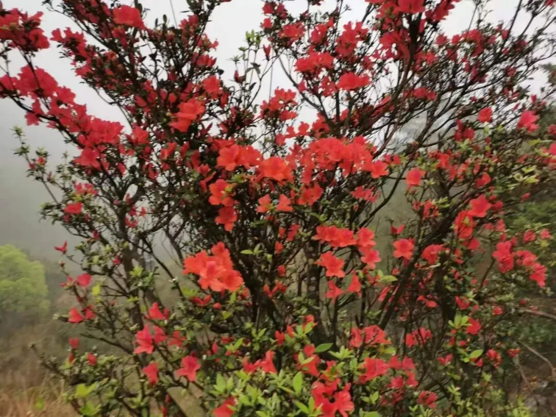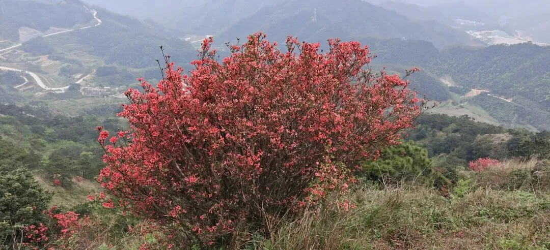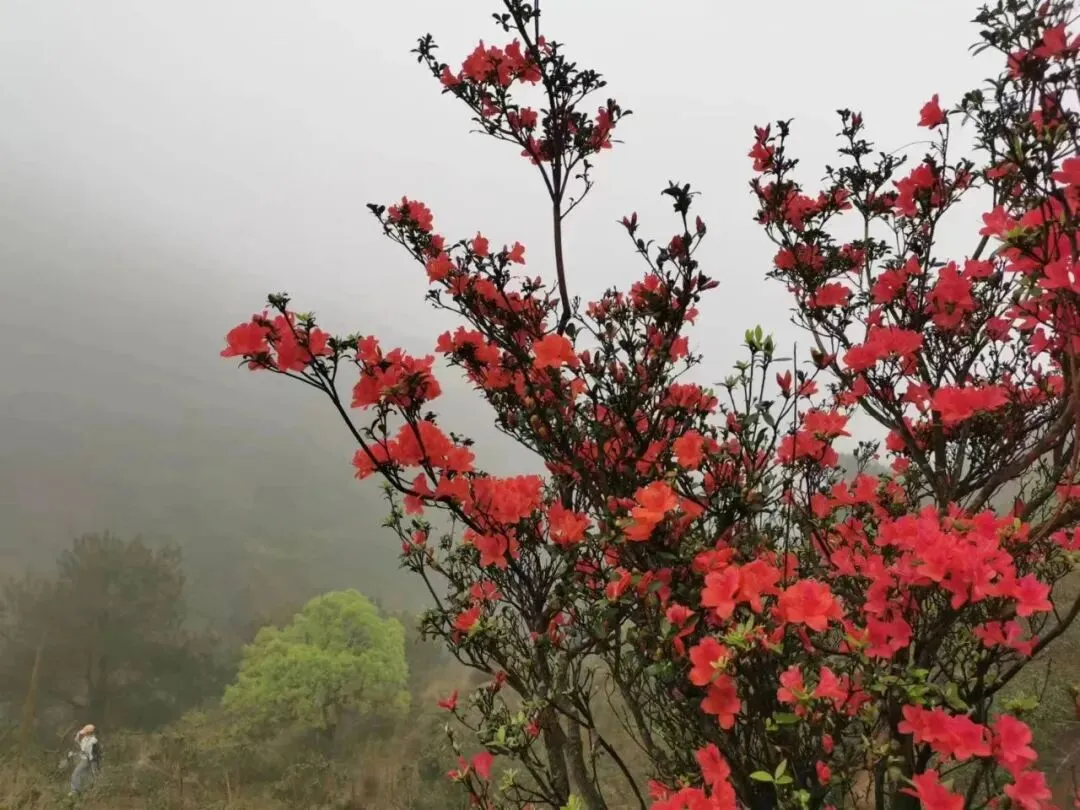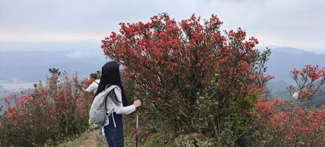 10:00-12:00 沿杜鹃专线登山(约3.2km),杜鹃坡、三界碑打卡拍照;山顶视野极佳,风大注意防风