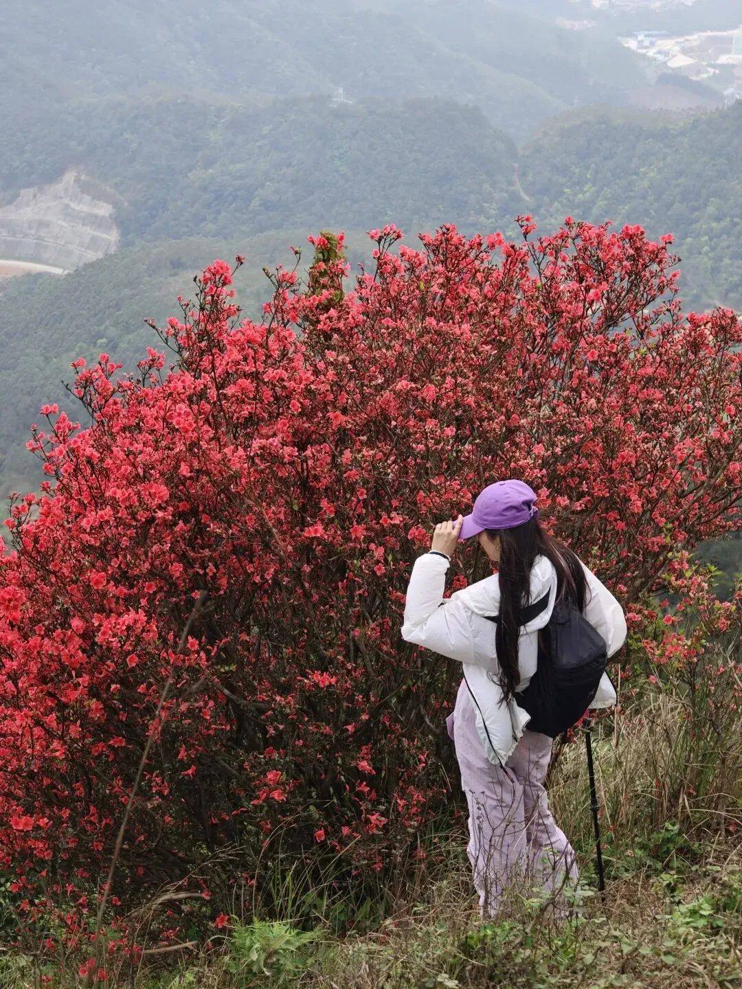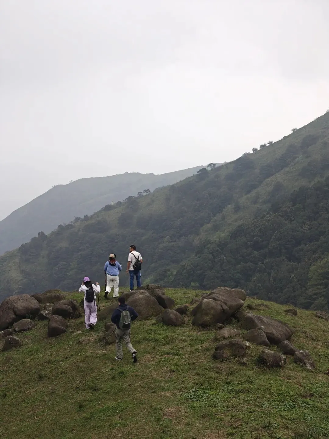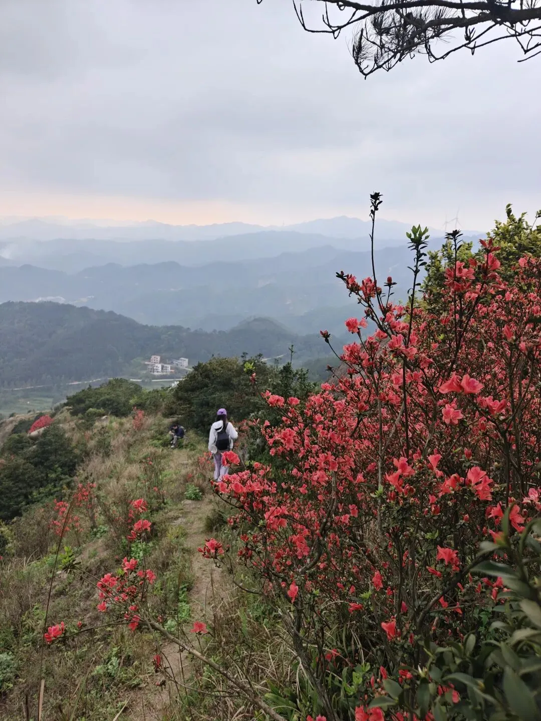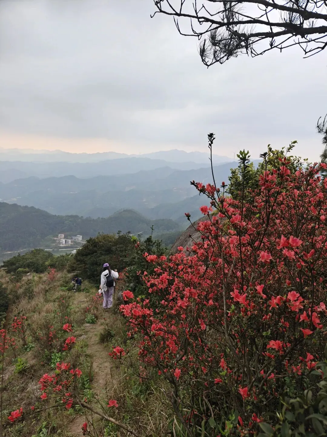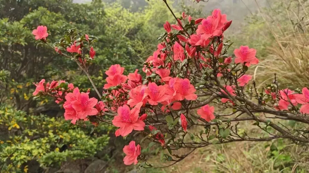10:00-12:00 沿杜鹃专线登山(约3.2km),杜鹃坡、三界碑打卡拍照;山顶视野极佳,风大注意防风
