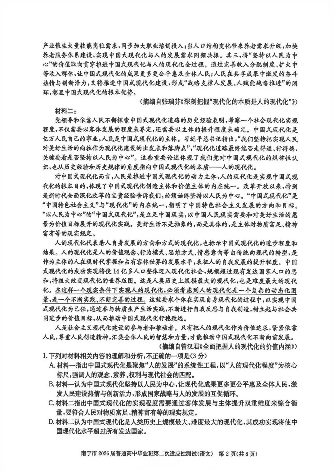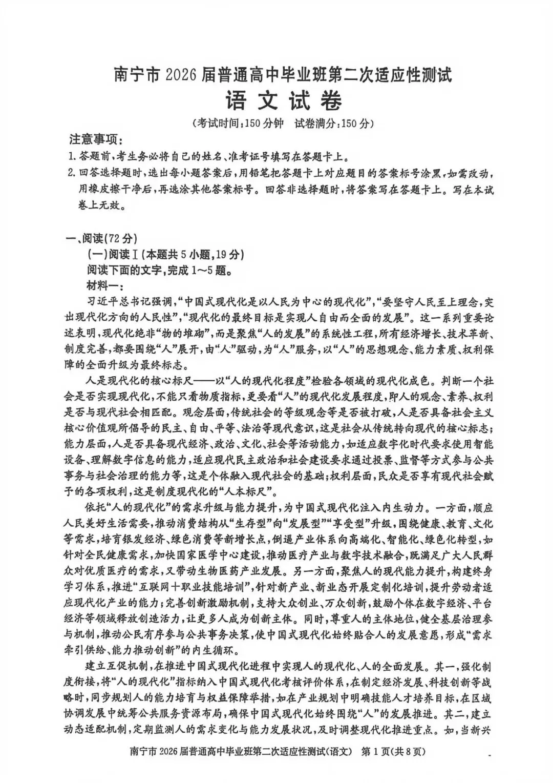 【广西卷】广西壮族自治区南宁市2026届普通高中毕业班第二次适应性测试