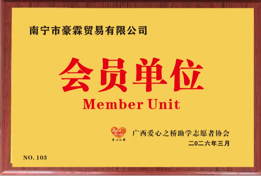 2026年3月,广西爱心之桥助学志愿者协会喜迎第一百零三家单位会员--南宁市豪霖贸易有限公司!协会助学之路再添新伙伴!