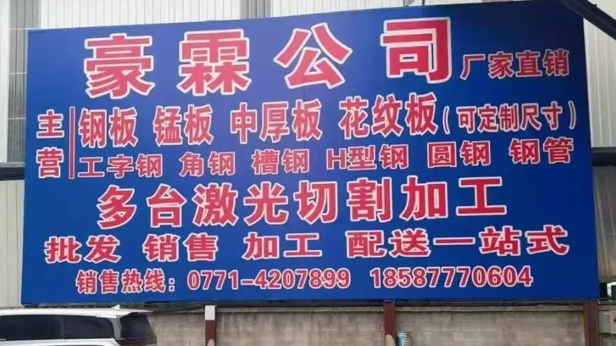南宁市豪霖贸易有限公司成立于2019年,是一家集金属材料贸易、建材机电销售、激光切割加工于一体的综合性企业。公司深耕钢材与金属加工领域,主营钢材、管材、金属制品、有色金属、建筑装饰材料、机电设备、汽车配件、化工产品(不含危险化学品)等业务,并运营专业激光切割中心,拥有完善的加工设备与成熟的服务体系,能够为客户提供一站式、高品质的材料供应与定制化加工服务。