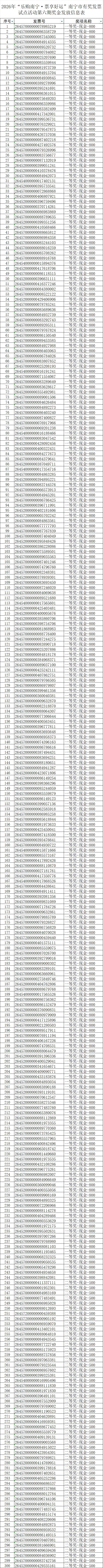 1.2026年“乐购南宁·票享好运”南宁市有奖发票试点活动第六期奖金发放信息表