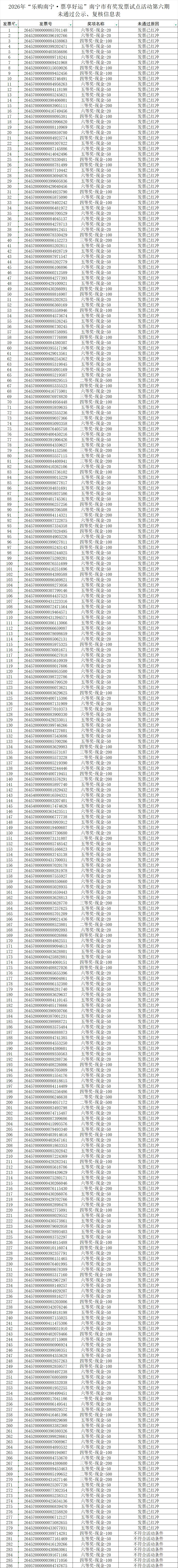 2.2026年“乐购南宁·票享好运”南宁市有奖发票试点活动第六期未通过公示、复核发票信息表