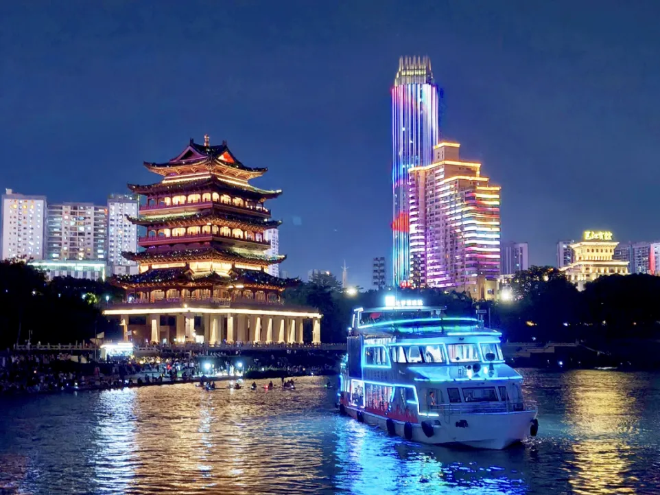 民族金浦路口即达民歌湖,现代地标+湖景夜景双绝。看“幸福嘹嘹啰”歌台表演,逛周边商圈,感受南宁的都市活力,夜晚氛围感拉满。