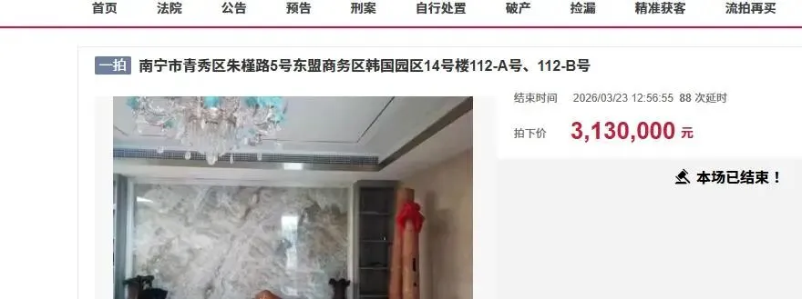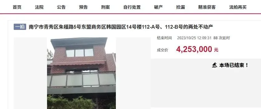 值得注意的是,这栋别墅早在2023年的时候就被拍卖过一次,拍卖的法院跟这次一样,也是横州市法院,2023年拍卖的时候,起拍价是168.3万元,起拍价还要低一些。当时有7个人报名竞拍,经过了94次加价竞拍后,以425.3万元成交,成交价比起拍价高出了257万元。而竞得者跟别墅原房东同姓,都是姓黄。可能是自己人报名抬价竞拍的,最后砸在手里,所以后面应该是悔拍了,所以才时隔三年又被拍卖了,因为第一次拍卖成交后,别墅并没有办理过户的。这次第二次拍卖,别墅的房东还是同一个人。