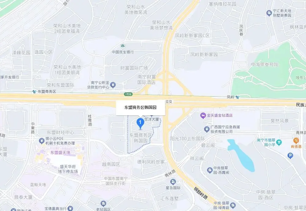 此次拍卖的这栋别墅,从地段来看,在南宁市还是相当不错的,地处南宁市东盟商务区优质地段,就在民族大道凤岭立交的西南侧。