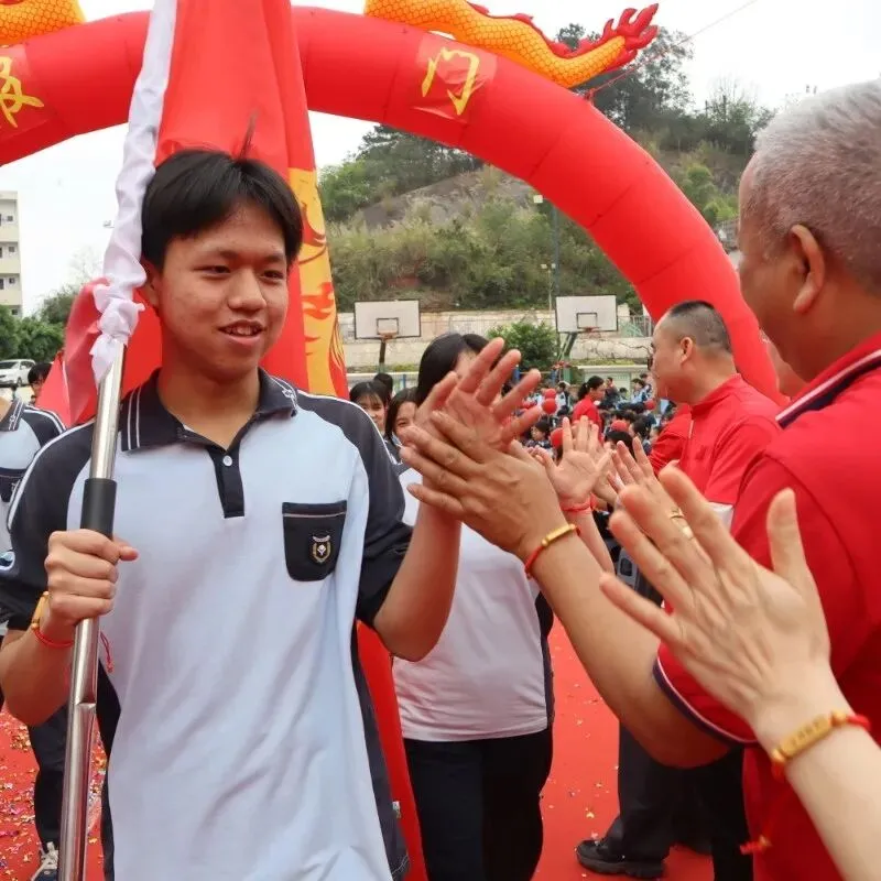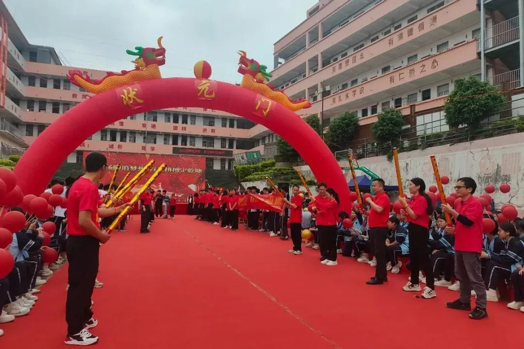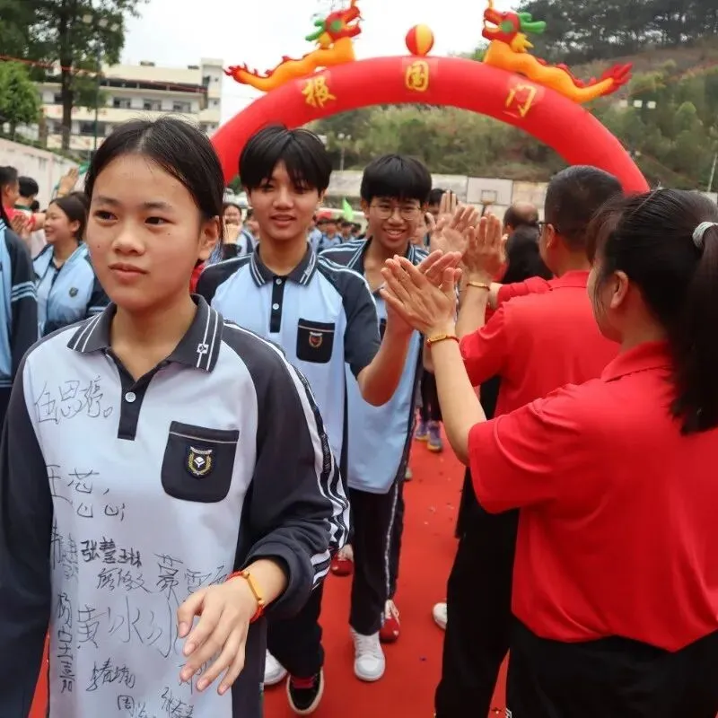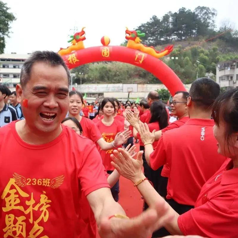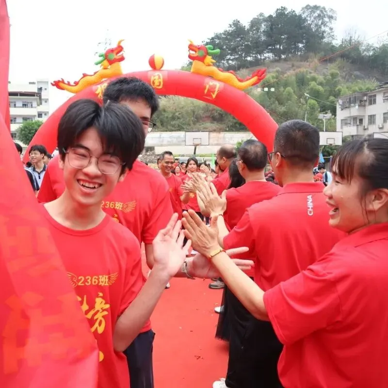 活动的高潮——“走向成功”仪式正式开始。毕业班学子在班主任和旗手的带领下,分列两路,踏上鲜艳的红毯。他们步伐坚定,意气风发,昂首跨越“状元门”。红毯两侧,全校教师夹道列队,与走过的每一位学子击掌加油。七八年级的同学们也全体起立,高声呐喊助威。礼花齐放,掌声雷动,场面热烈而感人。