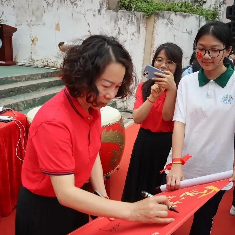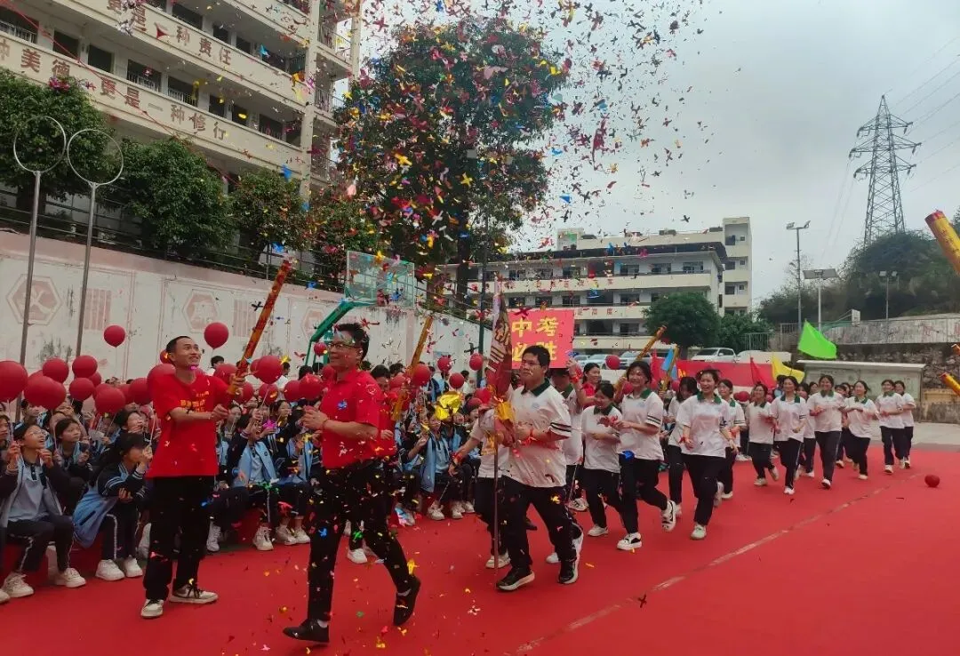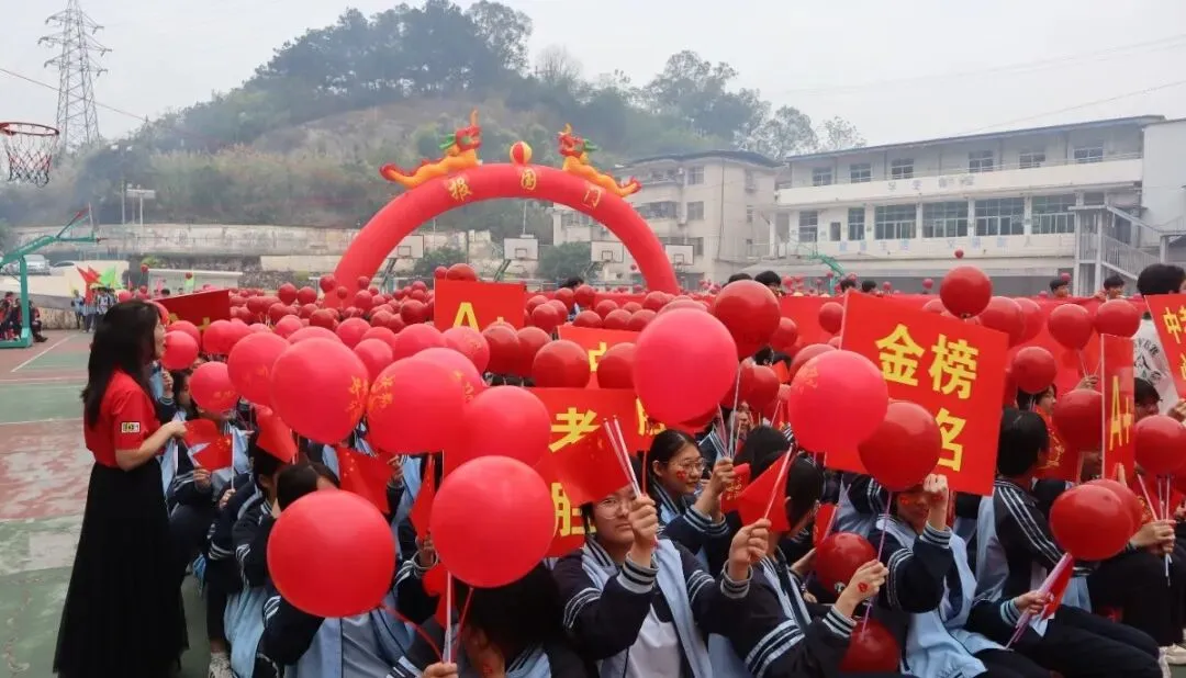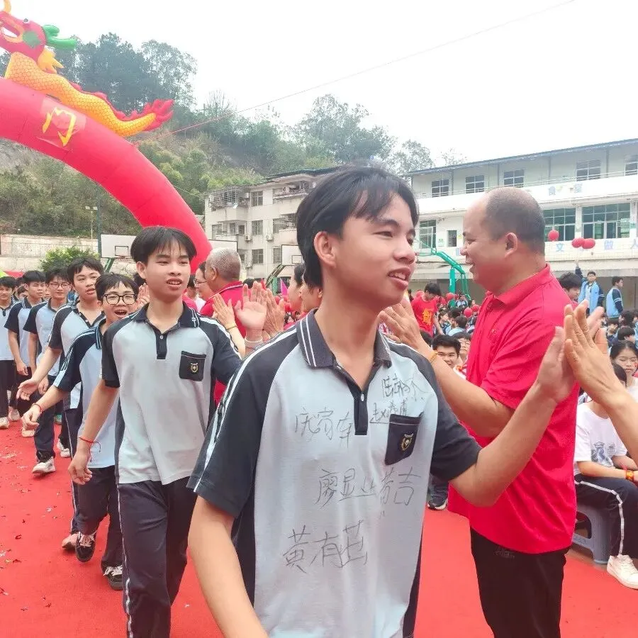 活动的高潮——“走向成功”仪式正式开始。毕业班学子在班主任和旗手的带领下,分列两路,踏上鲜艳的红毯。他们步伐坚定,意气风发,昂首跨越“状元门”。红毯两侧,全校教师夹道列队,与走过的每一位学子击掌加油。七八年级的同学们也全体起立,高声呐喊助威。礼花齐放,掌声雷动,场面热烈而感人。