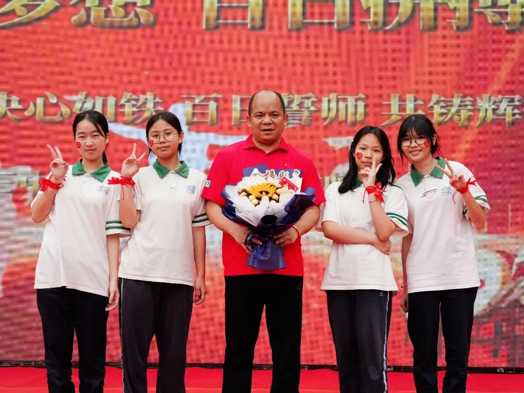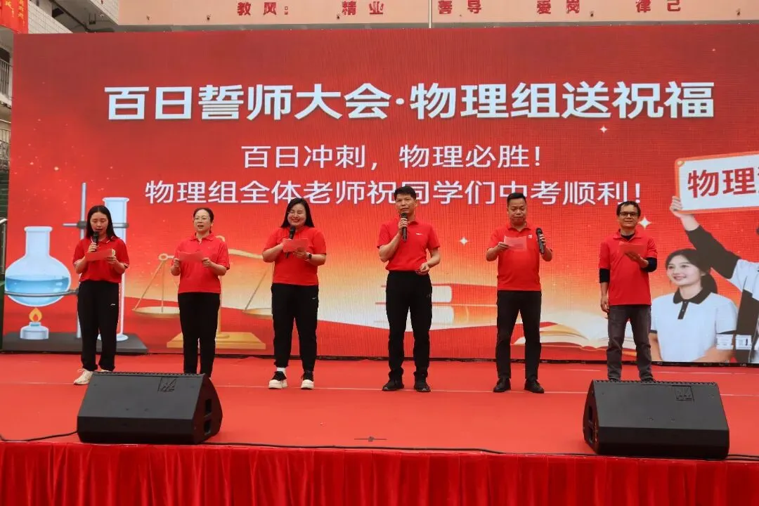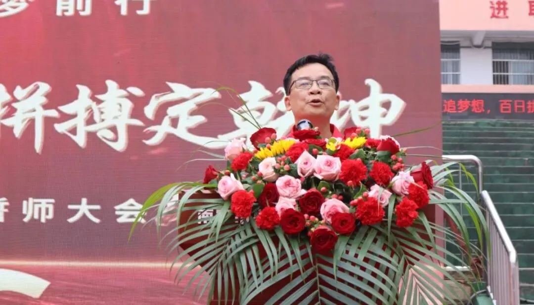 毕业班教师代表林盛育老师上台发言。他的发言字字珠玑,饱含深情。他代表全体九年级教师表达了对学子们的坚定信心与殷切期盼,鼓励同学们在最后一百天里,以坚定的意志、科学的方法和从容的心态,去迎接挑战,创造辉煌。老师们的关怀与嘱托,是学子前行路上最温暖的灯塔。