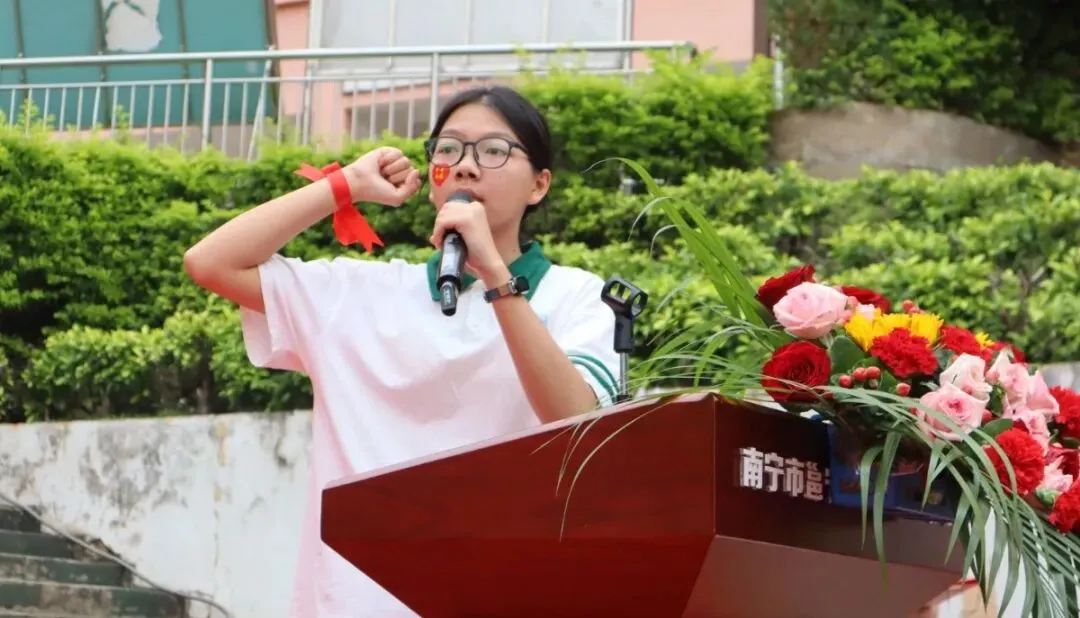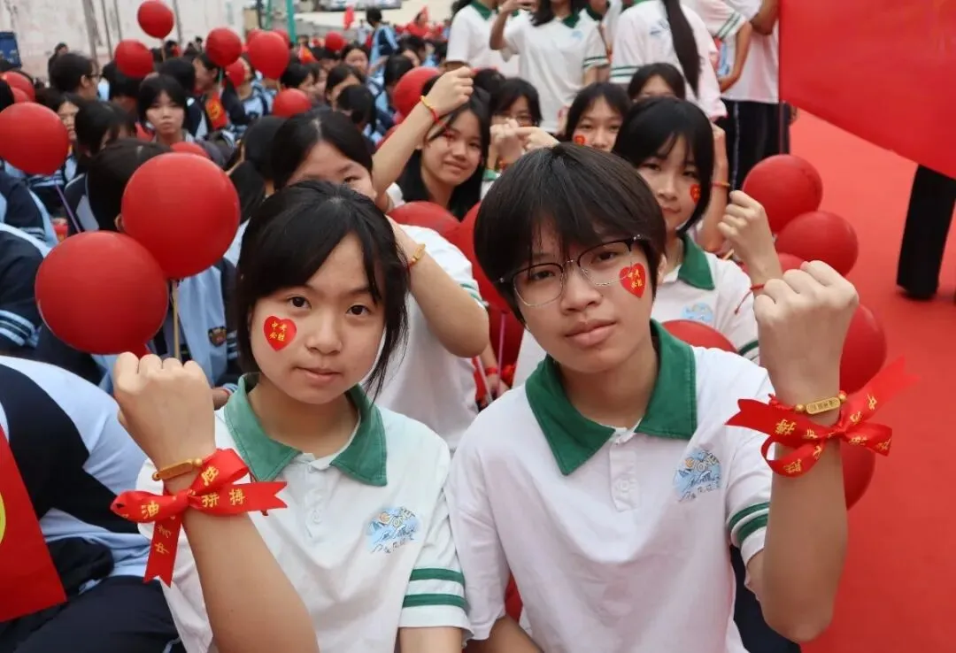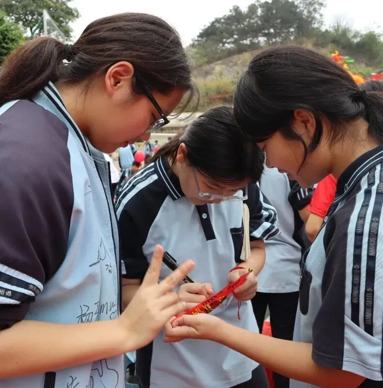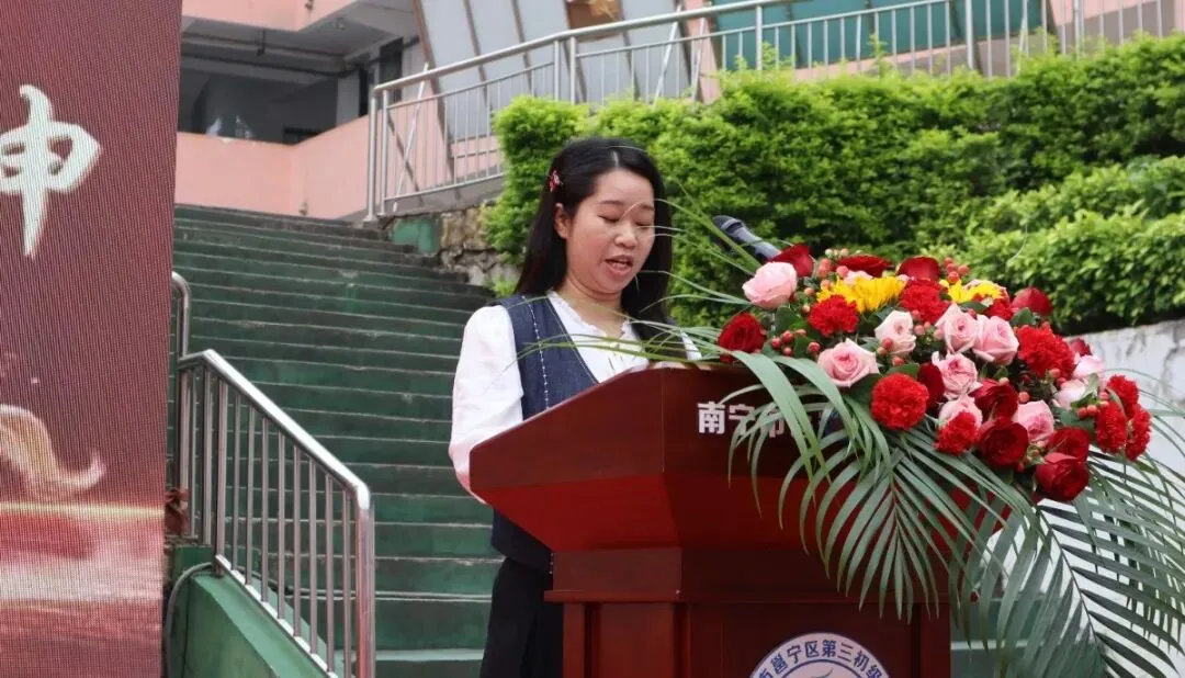 241班的莫丽萍同学走上台前,代表七、八年级全体学弟学妹,向九年级的学长学姐们送上最真挚的祝福。随后,她带领全场七、八年级同学齐声高呼“九年级加油、九年级必胜”。清脆而响亮的呐喊声在校园上空回荡,传递着同窗之间最纯粹、最温暖的鼓励与情谊。