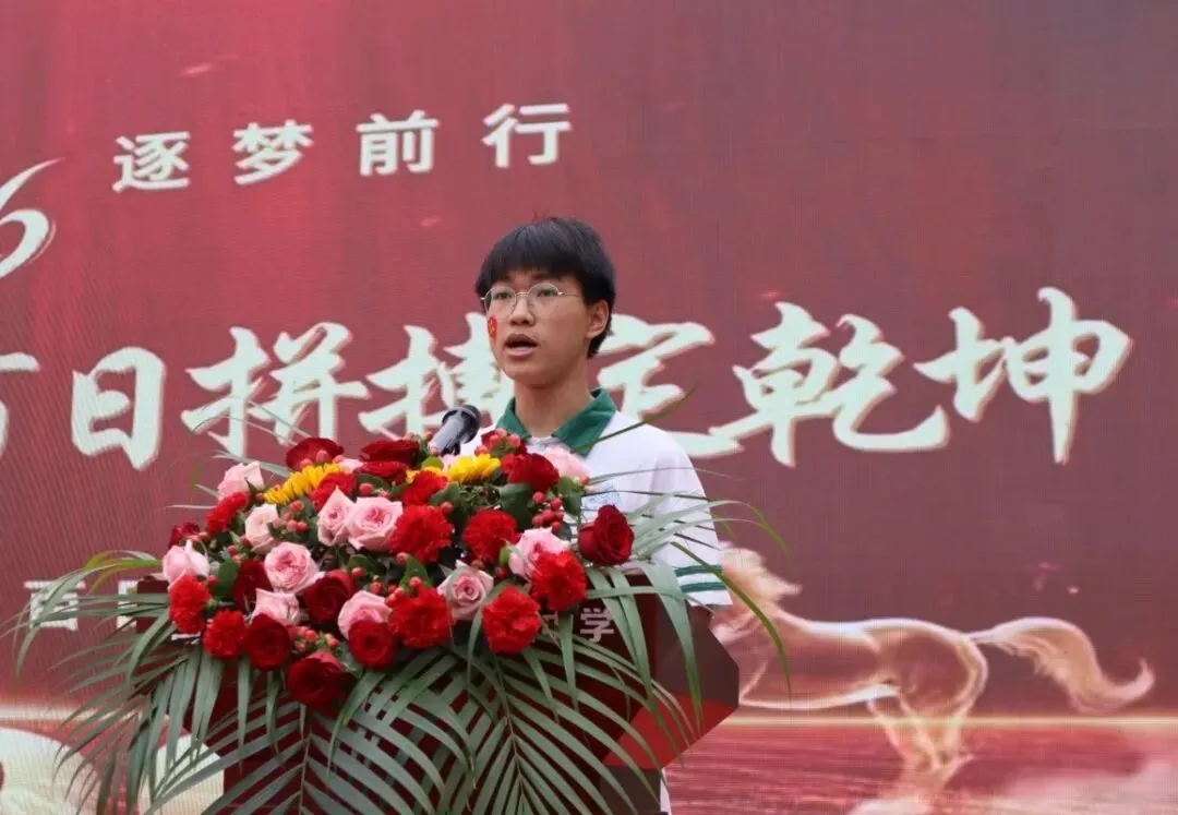 231班陆福康同学代表全体九年级学子发言。他分享了备考的心路历程,表达了珍惜光阴、全力以赴的决心,并号召全体同学以最饱满的热情、最昂扬的斗志、最刻苦的精神,投入到最后的百日冲刺中,他的发言道出了每一位毕业班学子的壮志豪情。