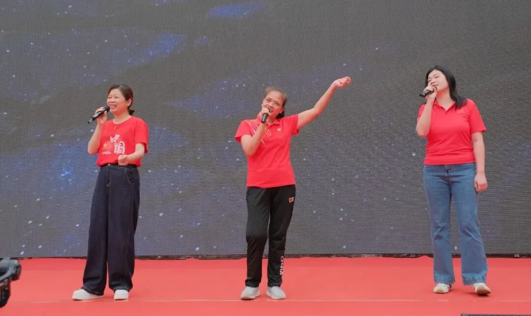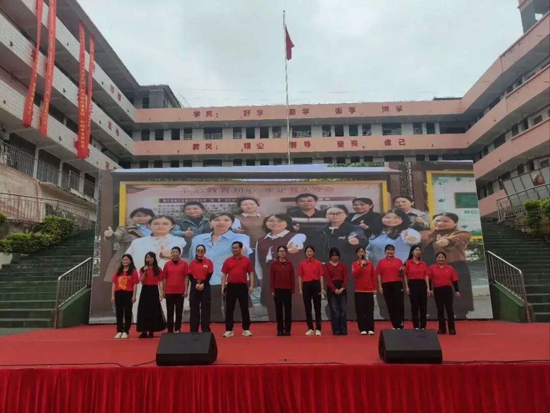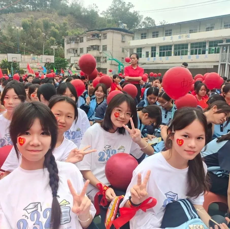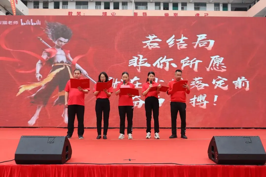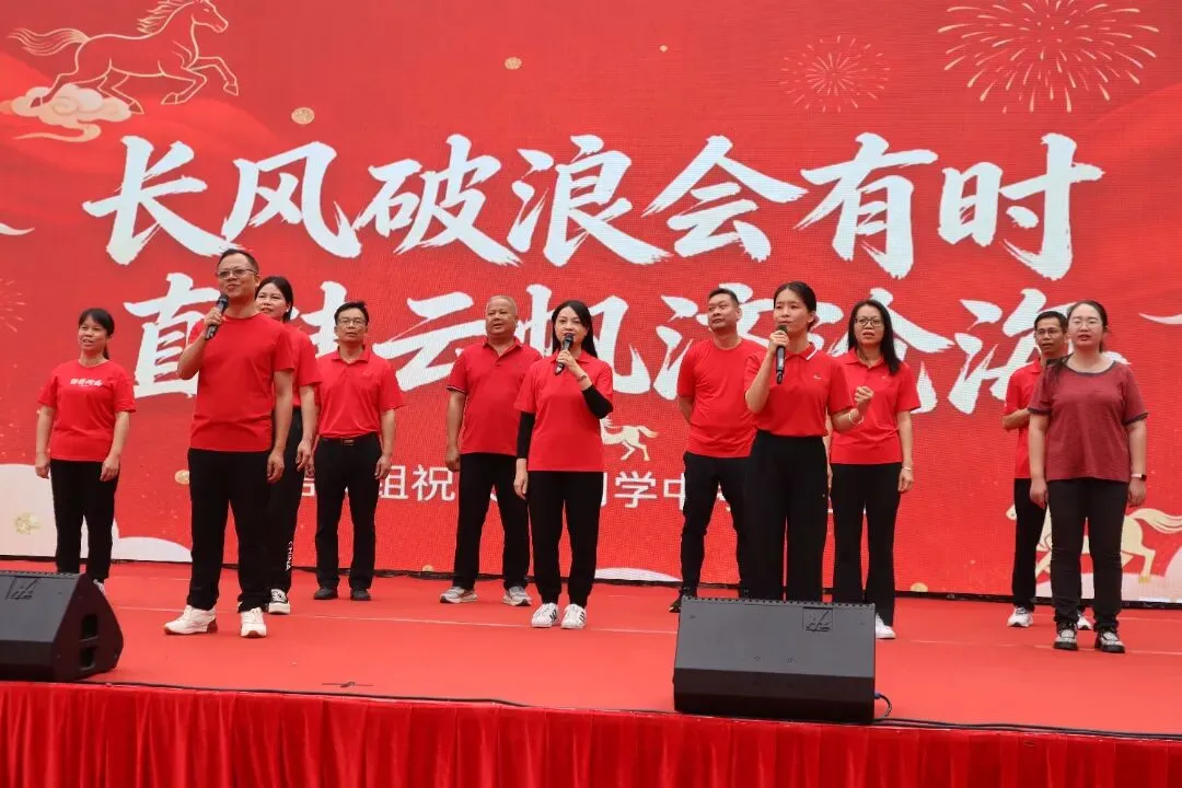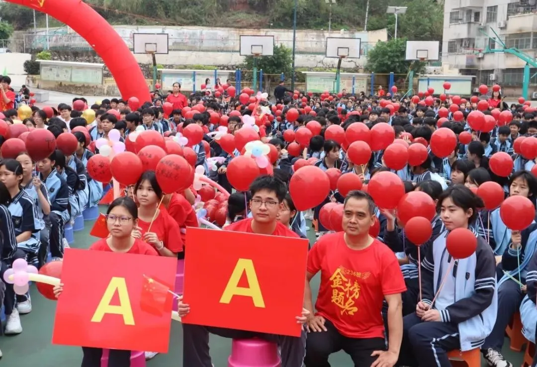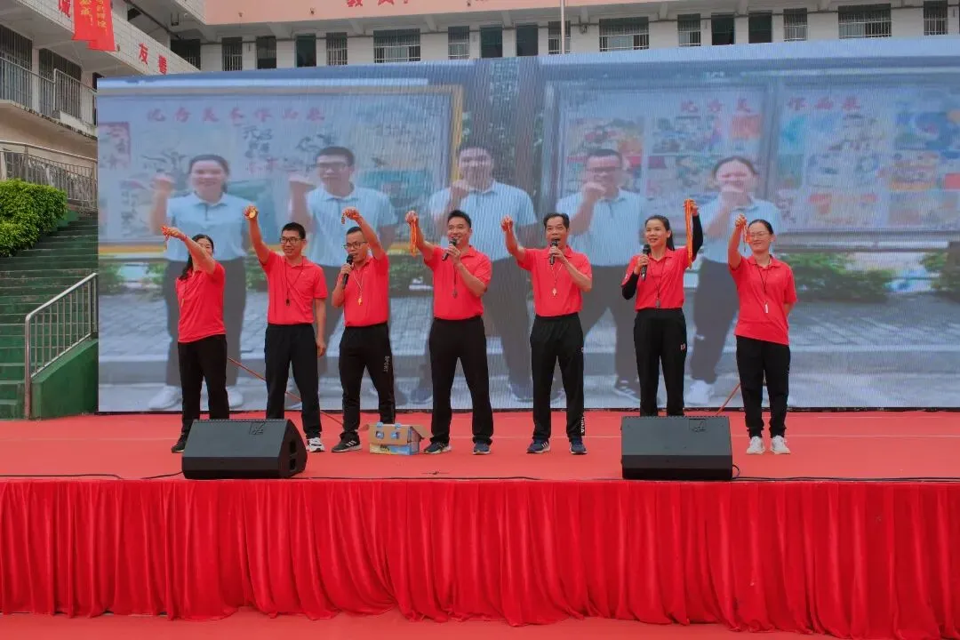 由黄伟华、罗整英、黄巧巧三位老师带来的歌曲表演将活动推向高潮,台下手持“A+”、“加油”等手牌或红色气球,跟随音乐节奏律动。歌声激昂,舞姿热情,表达了师生同心、共赴梦想的坚定与喜悦。