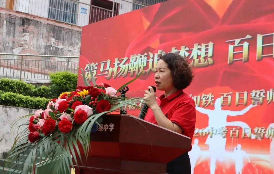 李玲书记为大会致辞。她的讲话高屋建瓴,又充满温情,既肯定了师生们的努力,又对最后百日的冲刺复习提出了明确要求和殷切希望。她鼓励同学们要坚定信心,讲求方法,以最佳状态迎接挑战,她的讲话为全体师生注入了强大的精神动力。