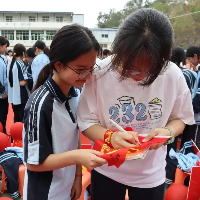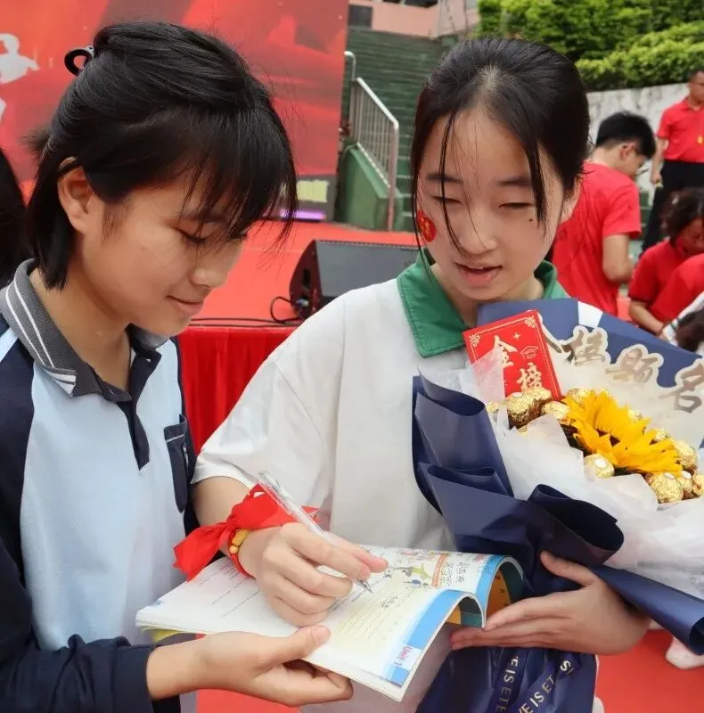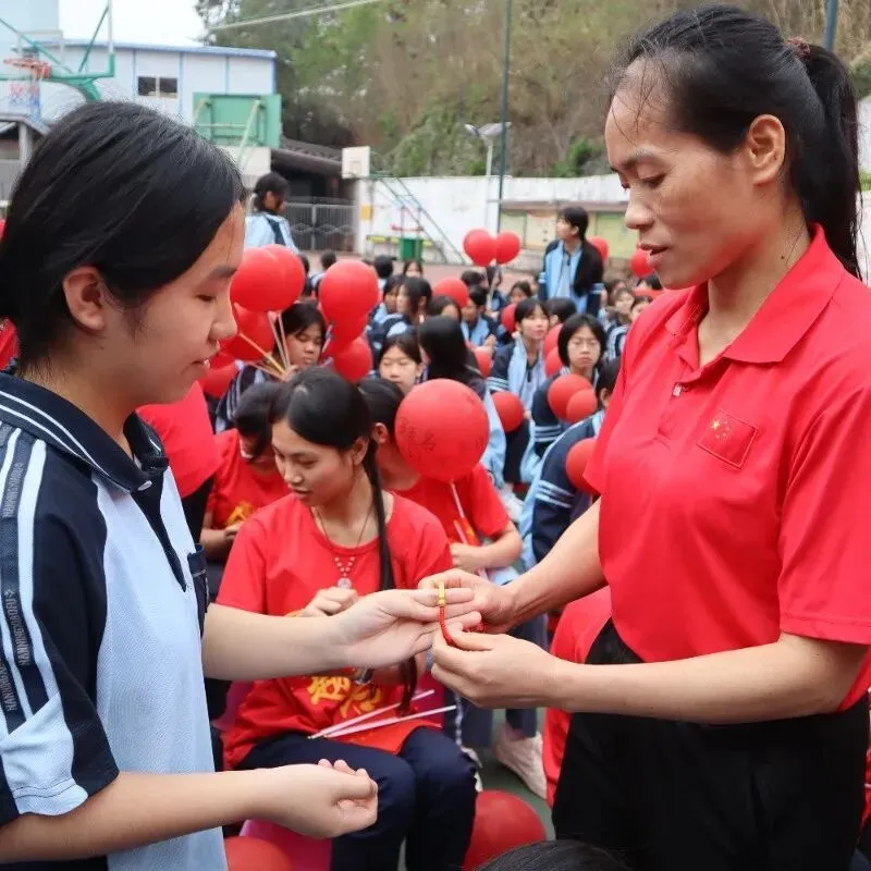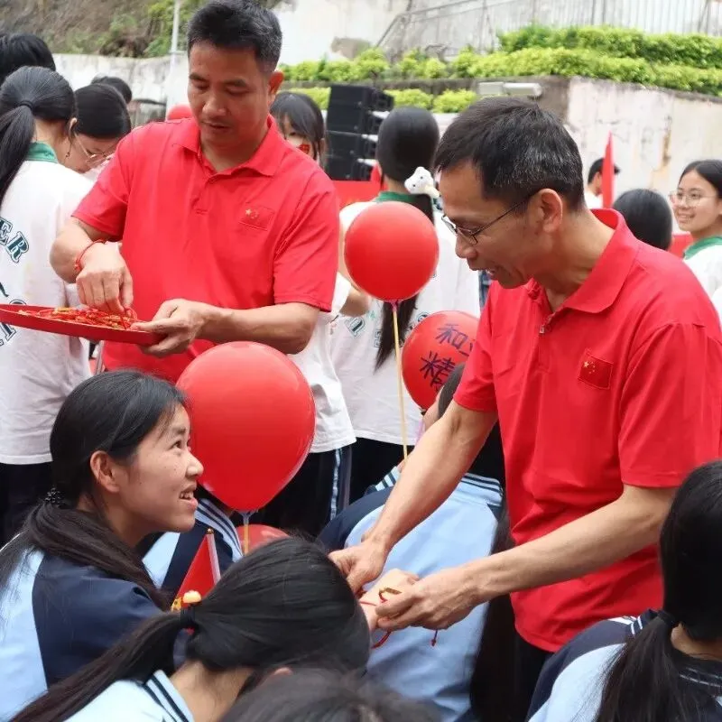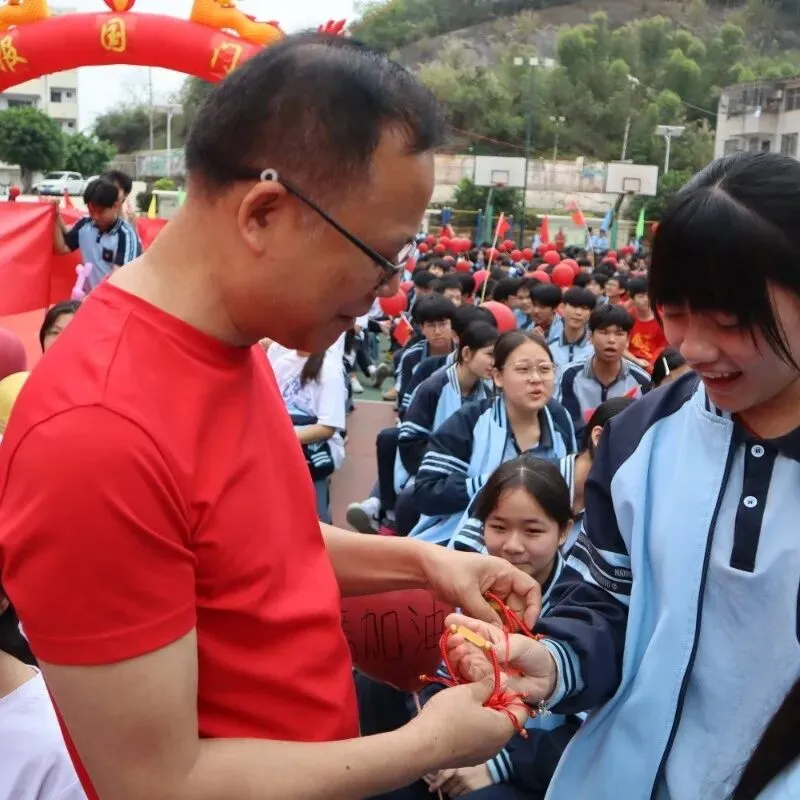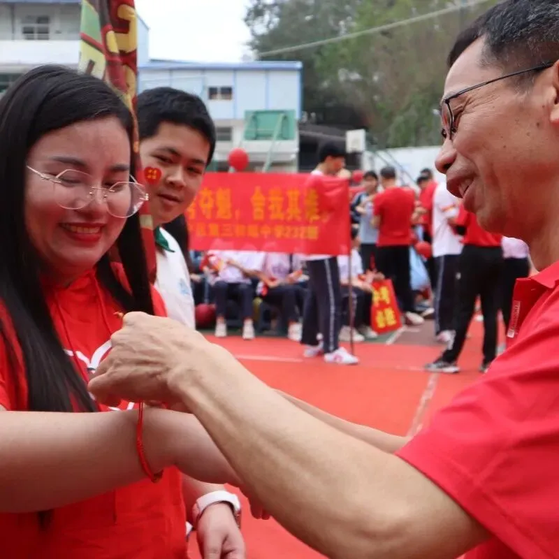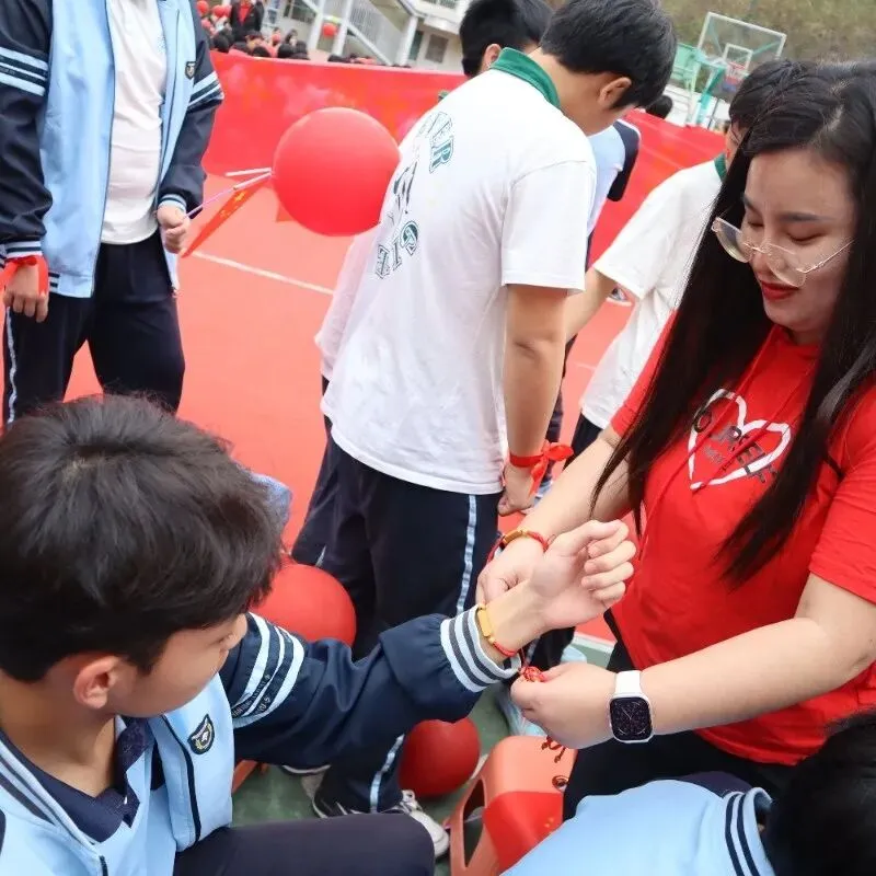 学校领导与九年级全体教师走进各个班级,为每一位同学亲手佩戴上寓意美好的“许愿手链”。一条条手链,寄托着老师对学生的深深祝福与殷切期望。这个温馨的环节,让学子们感受到来自师长最直接的关爱与鼓励。