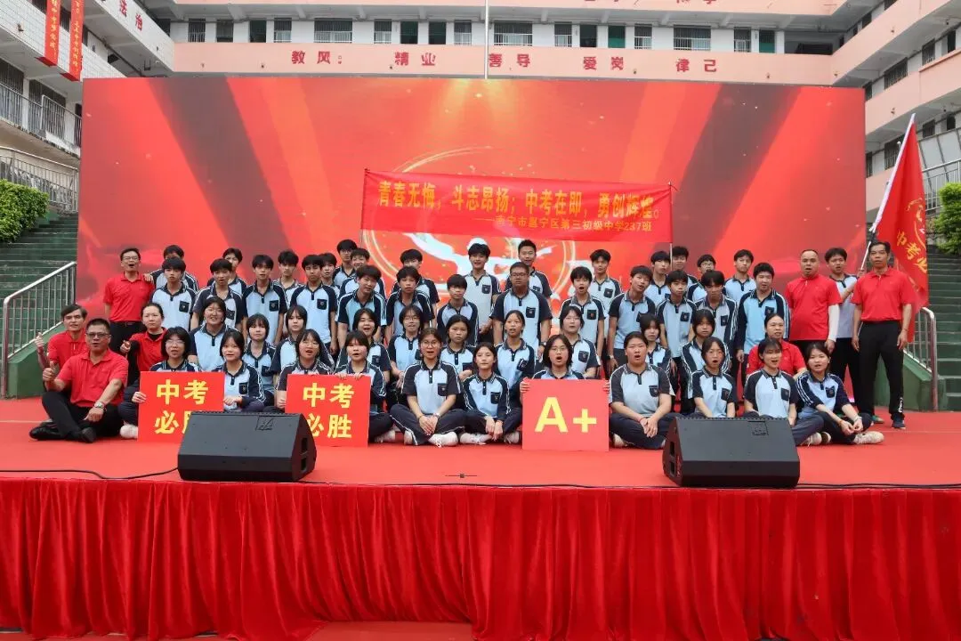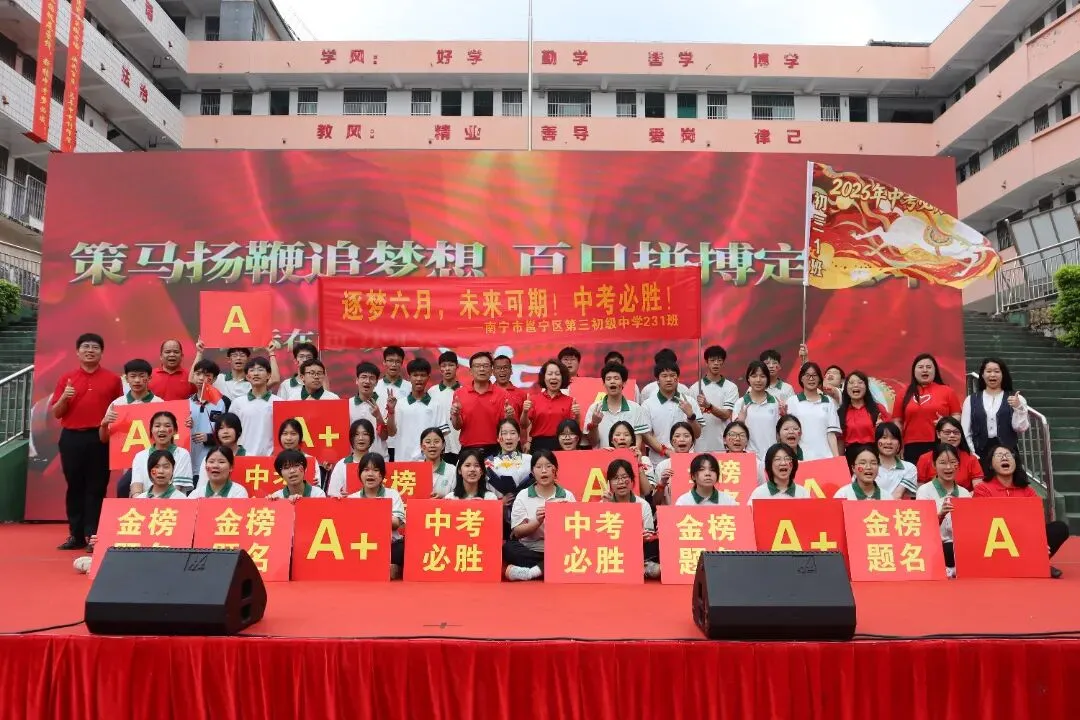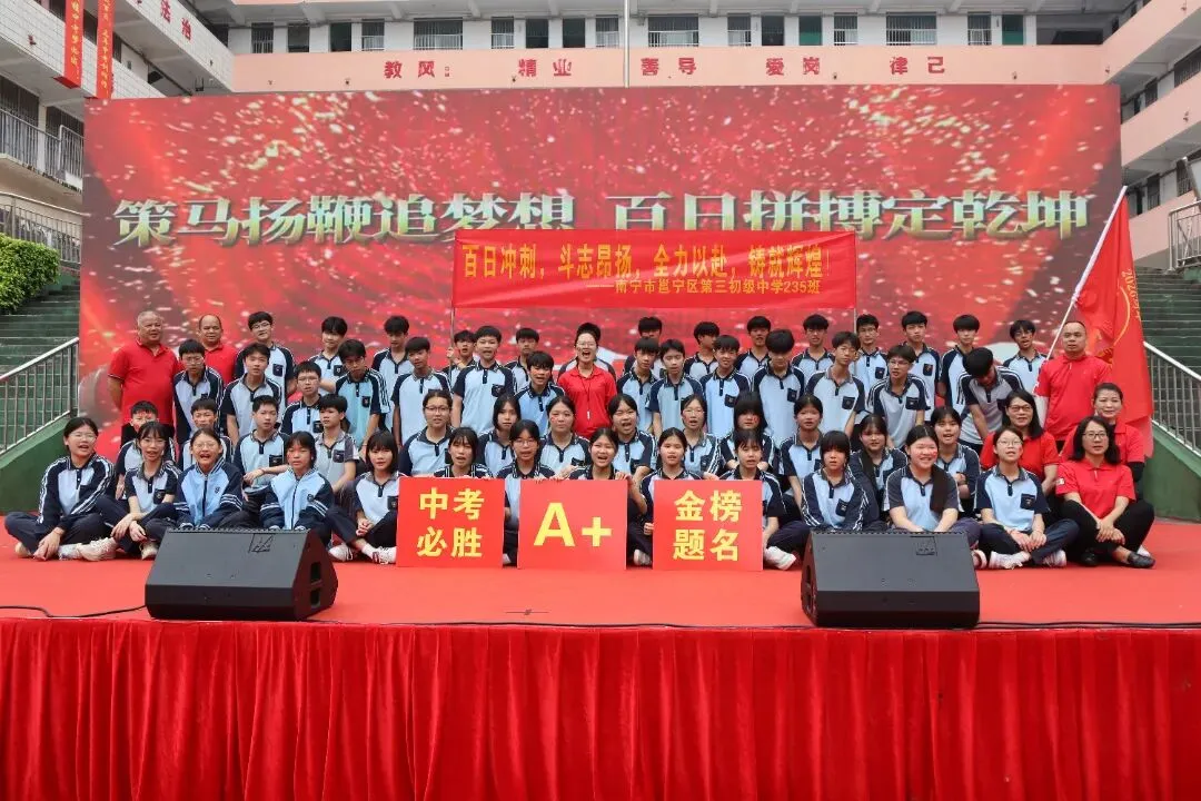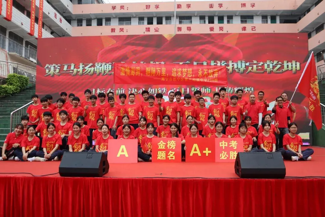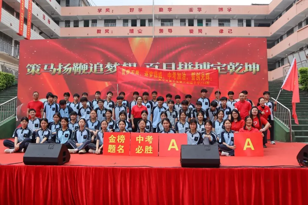 百日誓师的号角已经吹响,冲锋的战鼓已然擂动。我们坚信,南宁市邕宁区第三初级中学2026届的全体学子,必将以此次大会为新的起点,珍惜百日,拼搏百日,在丙午马年的盛夏,乘风破浪,金榜题名,为母校再创辉煌!