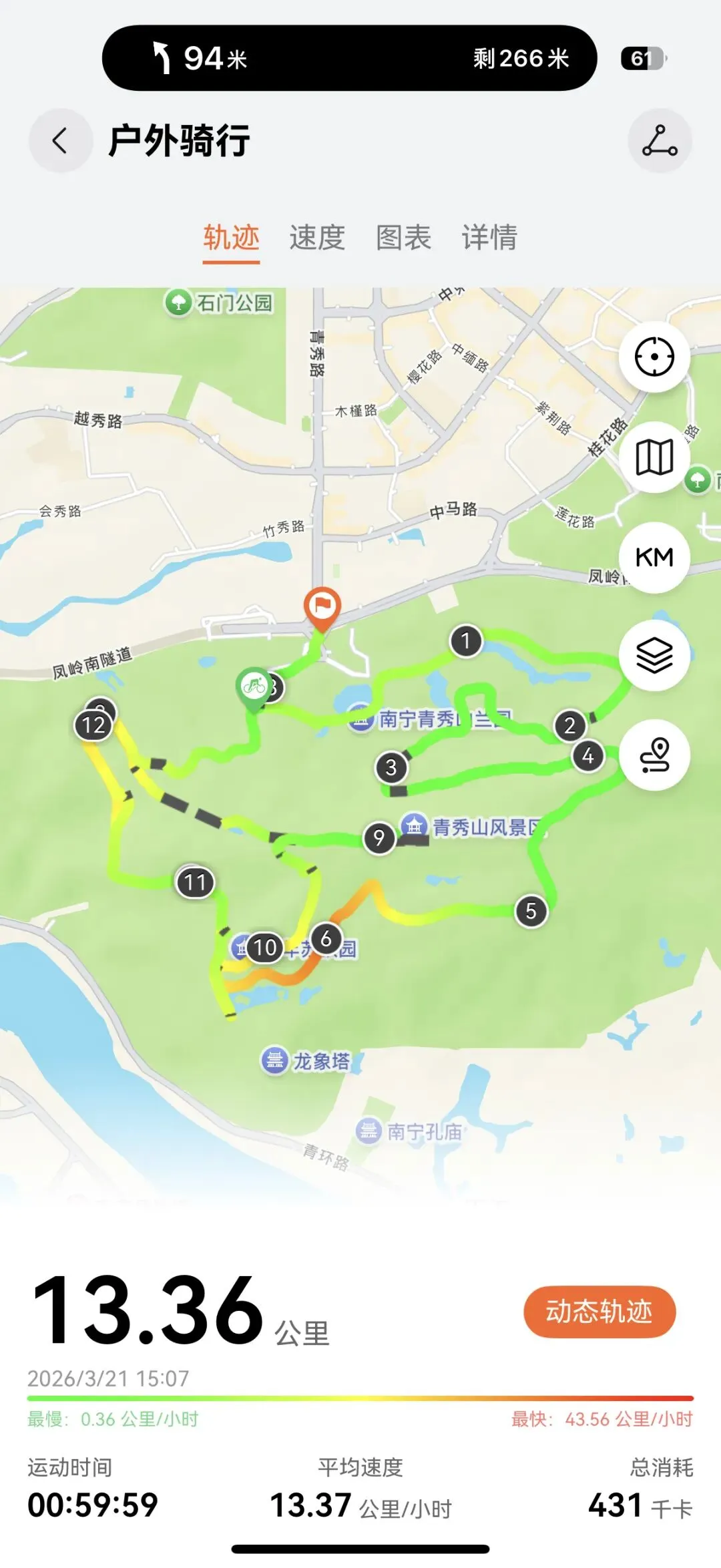 青秀山是可以骑行的噢,没带自行车也可以在青秀山附近租一辆,一天50💰/一小时15💰