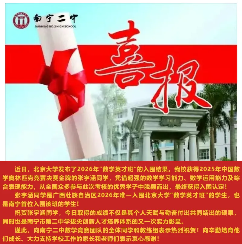 据了解,南宁顶尖学府的部分重心,已经随政策往“强基”、“竞赛方向”倾斜,筛选人才的标准也随着路径变化有所变动。