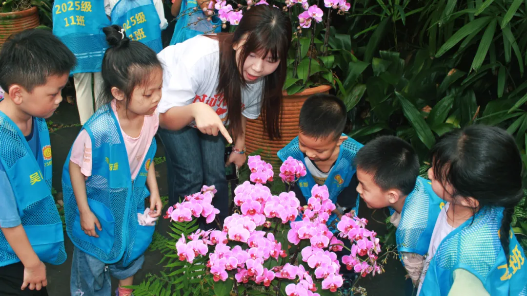 凤翔校区一年级同学走进青秀山兰花园,开展“寻觅兰之精灵”主题实践活动。同学们观察兰花形态、轻嗅花香,了解生长习性,在淡雅芬芳中感受着兰花高洁谦逊的品格,于亲近自然中涵养美好品德的种子。