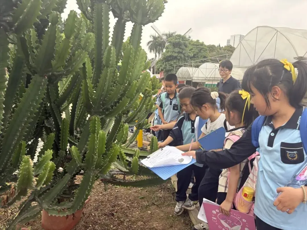 景晖校区一年级师生来到南宁市花卉公园,在花卉科普中心学习植物生长知识,漫步园中,用画笔描绘春日花卉,在观察与记录中亲近自然。