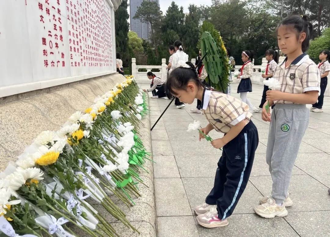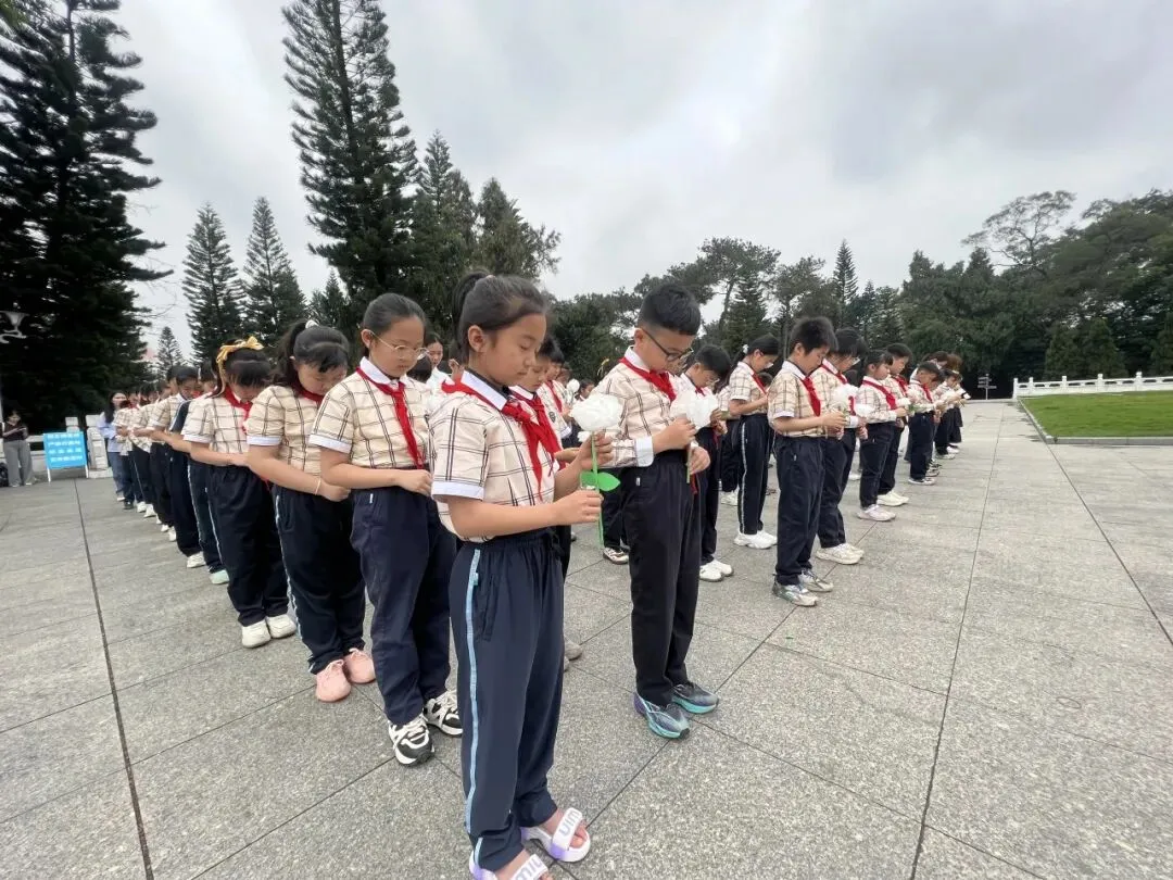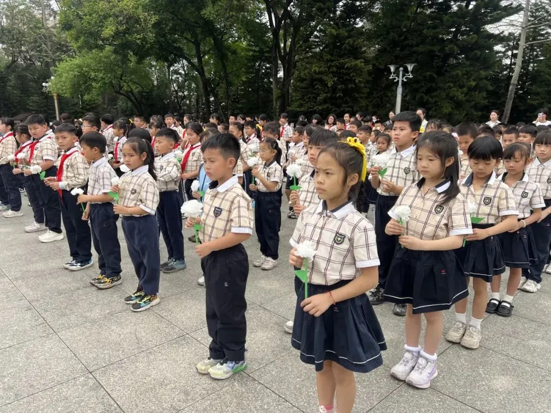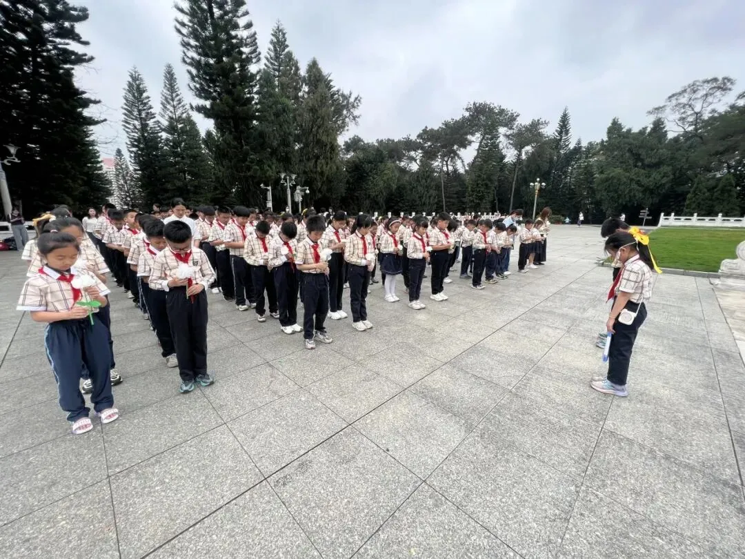 厢竹校区二年级全体师生前往人民公园开展“致敬革命先烈,传承红色精神”主题活动。同学们列队默哀、鞠躬献花,在纪念馆里聆听革命先辈感人事迹,学会敬畏历史、尊崇英雄,立志传承红色精神。