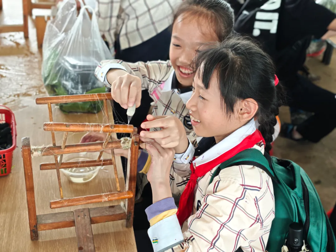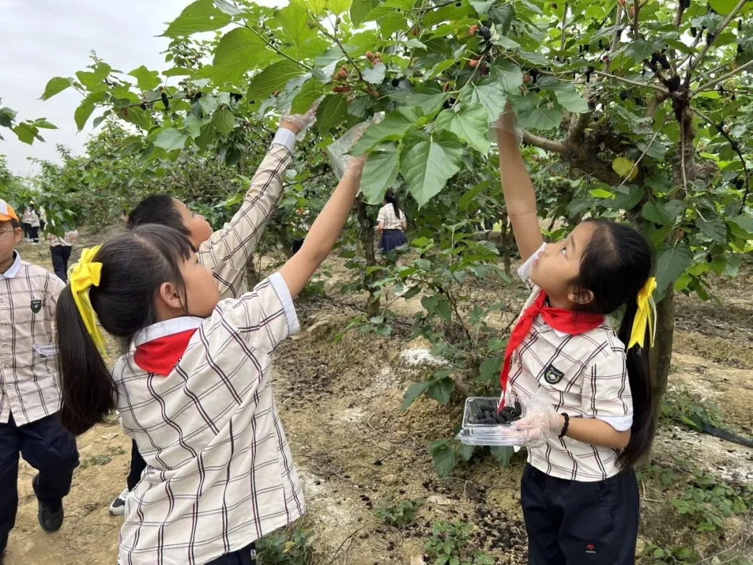 景晖校区三年级来到美丽南方,开展“小小养蚕人·非遗丝语”的实践活动。同学们在桑园里辨别成熟桑葚与新鲜桑叶,体验采摘乐趣,亲手投喂蚕宝宝,在实践中加深对蚕桑文化的理解,收获劳动与传统文化的双重滋养。