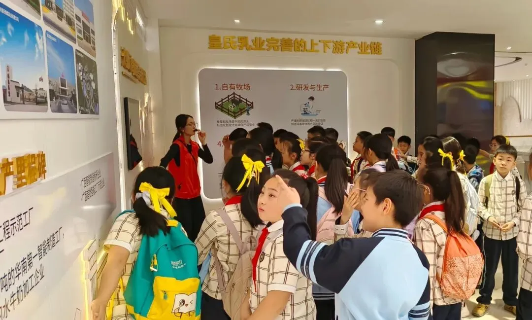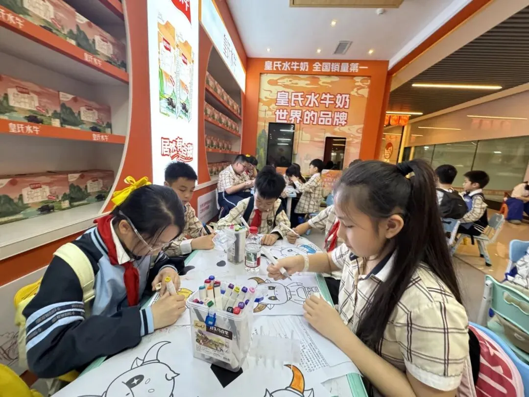 景晖校区四年级的学生走进皇氏乳业,开展职业体验综合实践活动。同学们先后体验乳业生产技术员、文创设计师、营养指导师等职业角色,参观智能工厂、创作牛牛文创,在探索中深化了食品安全与环保认知,提升了团队协作与问题解决能力。