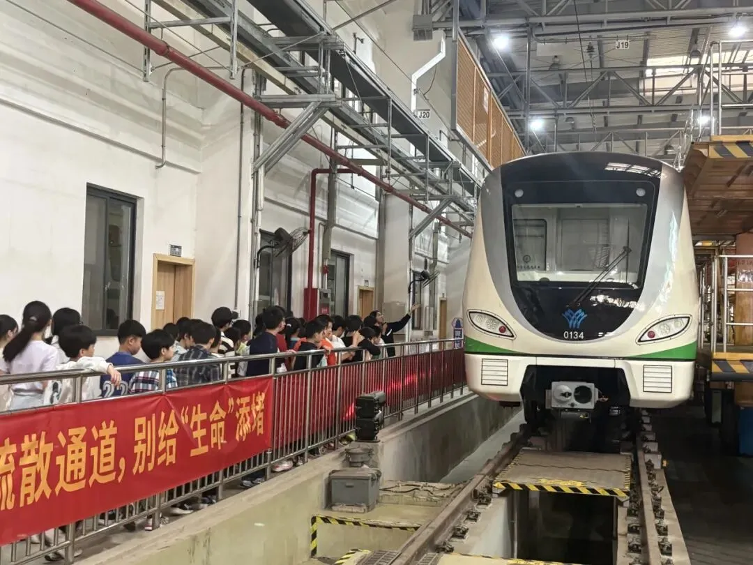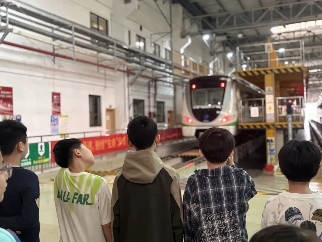 凤翔校区五年级师生走进南宁轨道交通屯里车辆段研学基地,观摩地铁驾驶与养护流程,体验模拟驾驶,探索轨道交通科技内核与运营智慧,在科普体验中感受科技魅力。