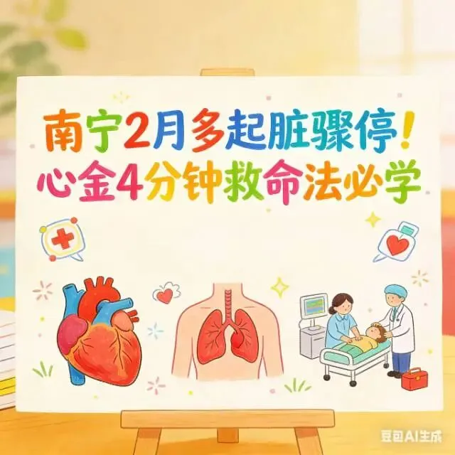 第一,黄金4分钟,立刻打120,马上做胸外按压,频率100-120次/分,深度5-6厘米,别停。第二,找AED,南宁地铁、公园都有,搜“南宁急救医疗中心”公众号就能查位置。