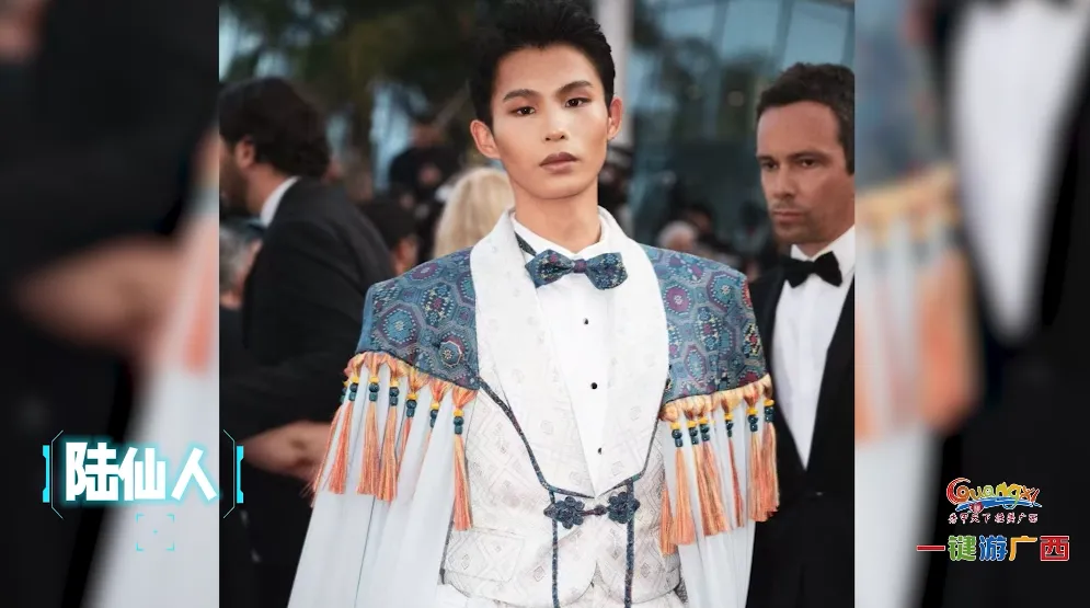 陆仙人戛纳红毯造型《王者归来》——以广西壮锦为核心,衣襟刺绣绘八桂山河,衣摆点缀凤凰纹,获戛纳“前100位最佳红毯造型奖”。当非遗穿在身上,震撼只有亲临才能体会。