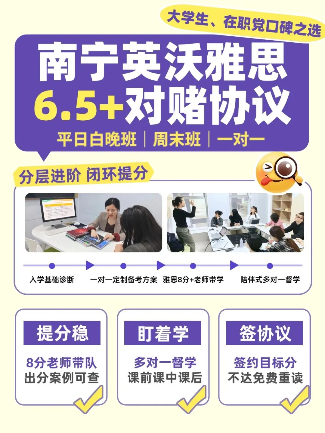 别再内耗了!在南宁,有这样一个专门治愈“自学不坚定”的雅思避风港——南宁英沃雅思。我们不画大饼,只签“6.5分+对赌协议”!