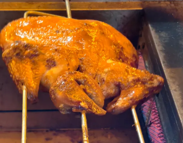 如果只点一道,建议试试香蕉鸡。做法不复杂,把本地散养鸡切块炒香,再加青香蕉一起焖。香蕉不是甜腻那种,而是吸了肉汁后变得绵软,粉粉的,鸡肉反倒更显鲜。汤汁一拌饭,人就安静了。