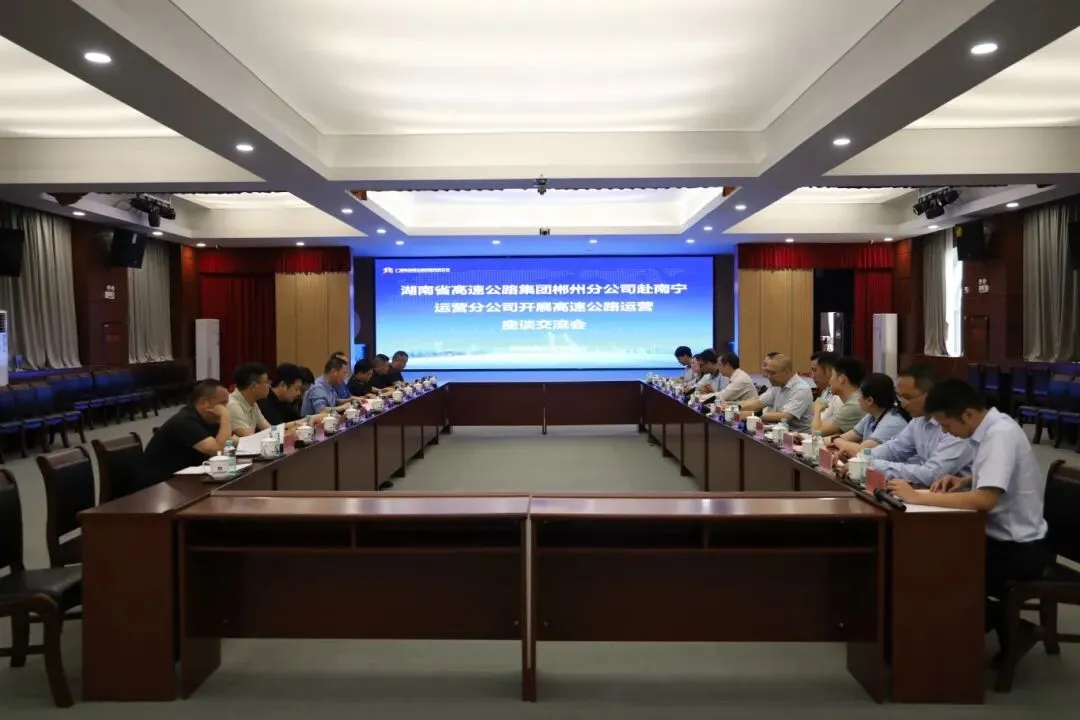 北投养护科技集团党委书记、董事长唐翔,新发展交通集团运营管理部副部长张宁,湖南高速集团郴州分公司相关负责人,南宁运营分公司各部门、站点相关负责人参加座谈。