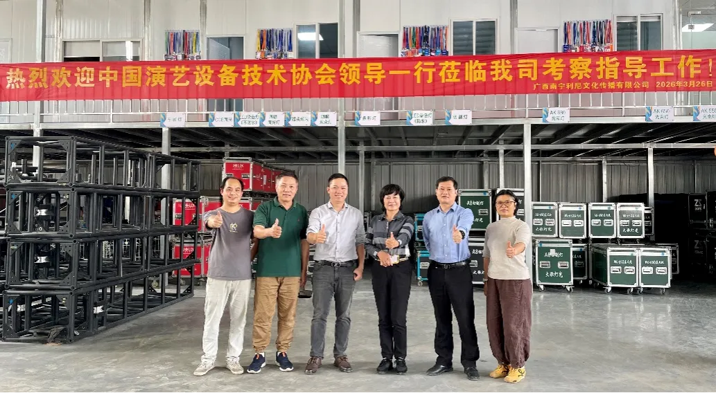 3月26日,中国演艺设备技术协会广西办事处主任何小葵、主任专家毛政、秘书长吉孝松、秘书石海珍一行,前往广西南宁利尼文化传播有限公司走访调研,实地探访企业经营现状,深入了解企业发展情况。