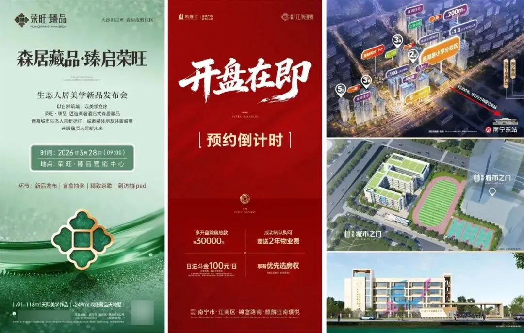 本周六南宁楼市供应集中,刚需看江南麒麟・江南璞悦,6900+ 单价、高得房率,性价比突出;改善看青秀荣和城市之门,双名校 + TOD 配套,教育与品质兼顾;天地楼选大沙田荣旺臻品,超高得房率、多功能空间,满足个性化居住需求,想买天地楼的朋友,一定要关注这个楼盘。三个项目覆盖不同板块与产品类型,购房者可根据自身预算与需求精准选择。