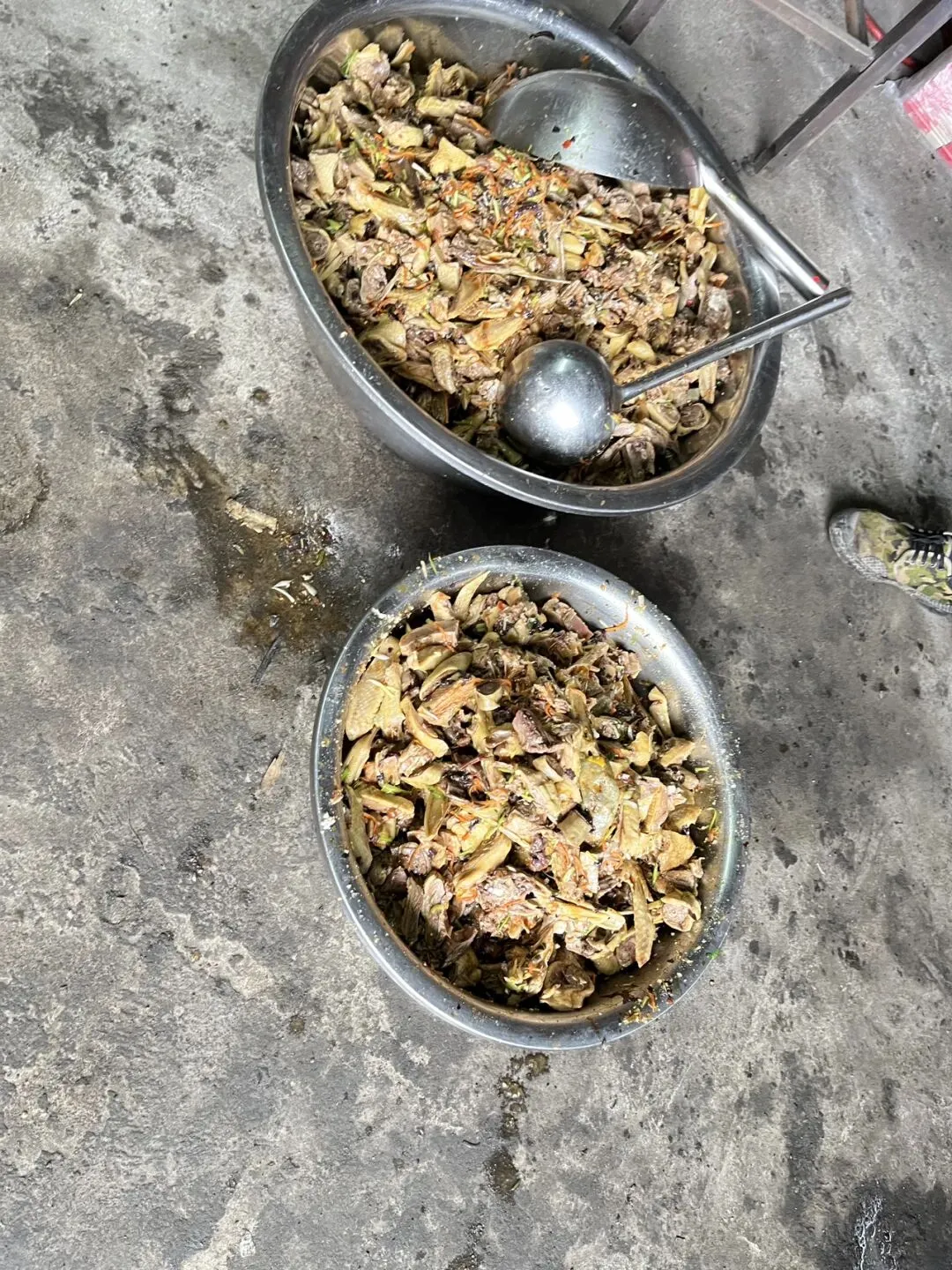 镇上的广场像是在办酒席,很多人在忙着准备:炸好的肉皮、烧好的鸭子,还有大锅里正煮着的大片五花肉。师傅见我在拍照,还特意夹起一块让我尝尝,我望着那颤巍巍的肥肉,笑着婉拒了。