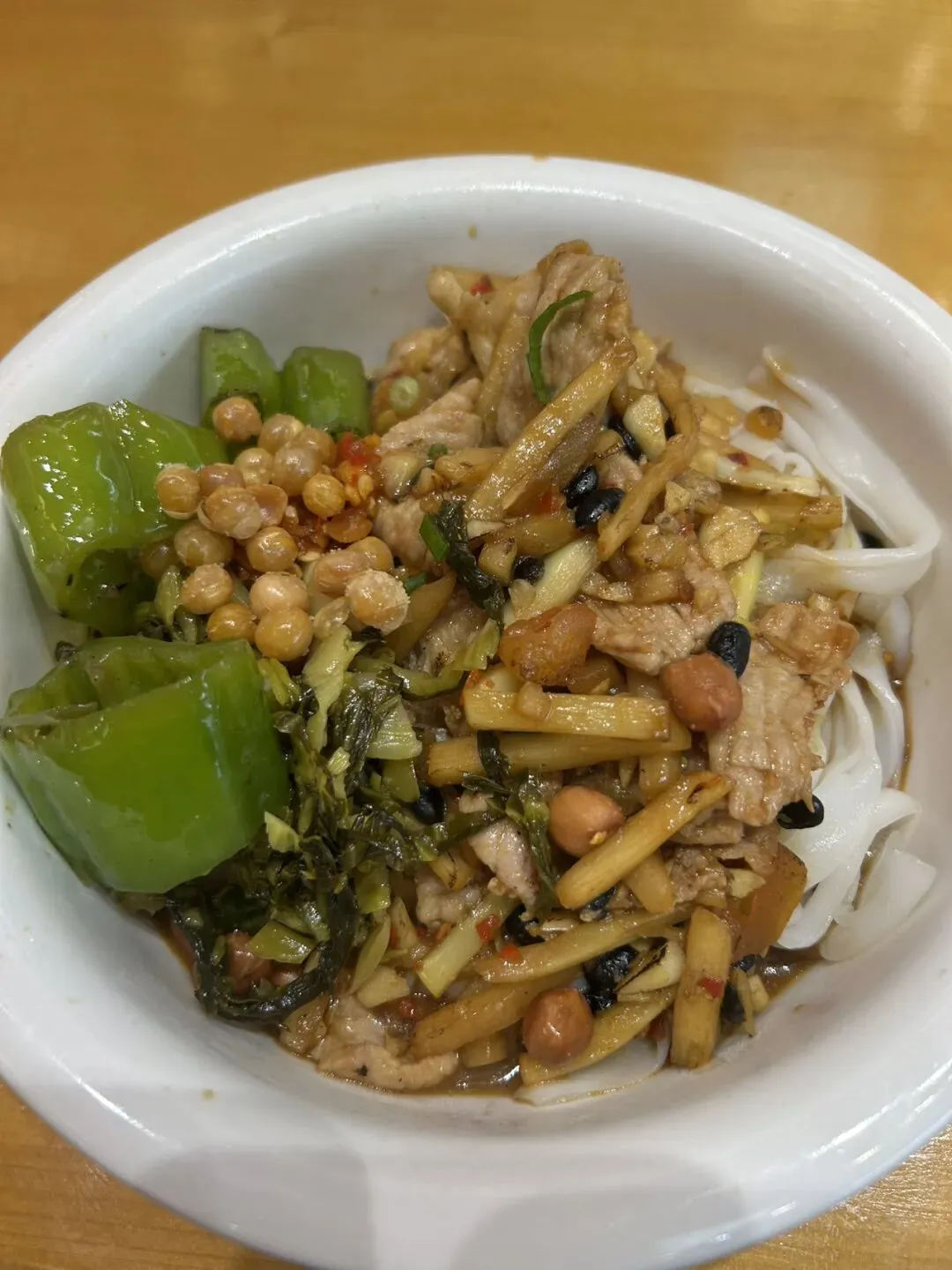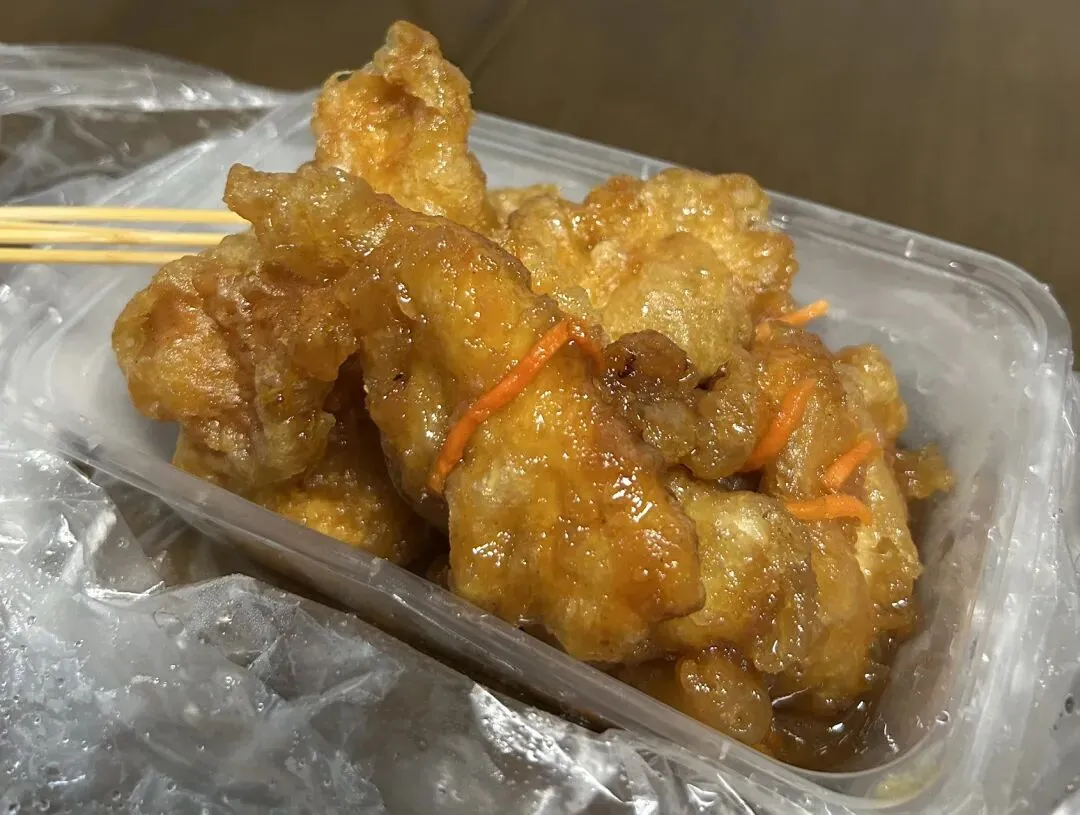 面粉包裹猪肉炸到酥脆,倒入酱汁和胡萝卜翻炒1分钟左右收汁,在老板递过来那一刻就等不及🤤来一口,肉在嘴里爆汁,酸甜恰到好处。