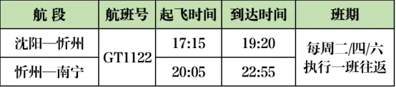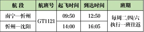 新增开通 南宁—忻州—沈阳