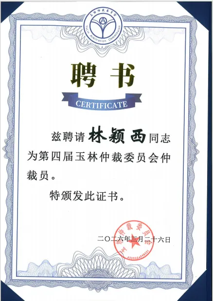 鸿州南宁分所始终重视争议解决领域的专业建设,积极支持律师参与仲裁、调解等多元纠纷解决工作。此次林颖西律师受聘为玉林仲裁委员会仲裁员,进一步夯实了律所在仲裁法律服务领域的专业基础。未来,鸿州南宁分所将继续发挥专业优势,助力仲裁事业高质量发展,为当事人提供更加优质、高效的法律服务。