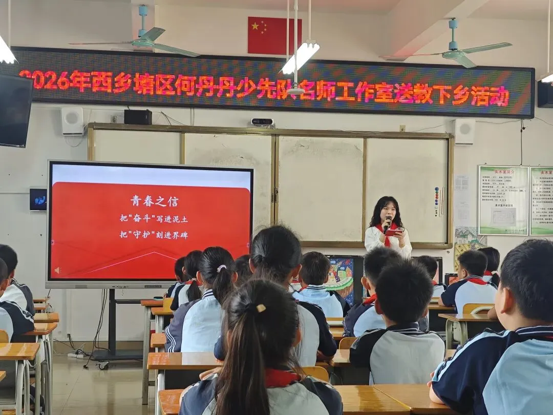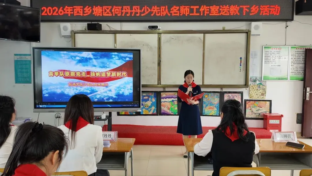 为深入推进少先队改革落地见效,充分发挥名师工作室示范引领作用,推动城乡少先队教育优质均衡发展,3月26日,南宁市西乡塘区何丹丹少先队名师工作室骨干成员走进坛洛镇中心小学开展少先队送教下乡活动。(何丹丹少先队名师工作室到坛洛镇中心小学开展送教下乡活动) 活动中,桃花源小学辅导员唐珊文带来《八桂“蔗”里 “掂过碌蔗”》少先队活动课,以“知甜—悟甜—传甜”为主线,设计感官体验、制糖拼图等趣味互动环节,让队员们沉浸式了解广西甘蔗产业发展优势,真切体会科技赋能乡村振兴的重要意义,引导队员们争做乡村振兴的“小小代言人”。 (桃花源小学辅导员唐珊文为少先队员们上少先队活动课) 思想引领润童心,榜样力量促成长。在主题宣讲活动上,清川小学辅导员钟宛倩以《给未来的自己写封信》为主题开展宣讲,结合祖国发展蓝图、习近平总书记梁家河奋斗故事及广西优秀少先队员代表韦钰函护界碑故事,用鲜活案例、生动讲述转化为队员们听得懂、记得住的内容,引导少先队员深刻领悟奋斗的意义与家国情怀;秀厢小学辅导员韦春婷老师则为少先队大队2019级(3)中队带来《回家》主题宣讲,讲述黄大年归国科研的先进事迹,队员们纷纷表示要以黄大年爷爷为榜样,立下科技报国志向。(清川小学辅导员钟宛倩以《给未来的自己写封信》为主题开展宣讲) 随后的辅导员交流环节中,工作室成员与学校辅导员展开深入交流,聚焦乡村少先队工作重难点问题,相互分享少先队工作经验。坛洛镇中心小学辅导员冯依向在座的辅导员介绍了坛洛学区少先队工作情况。工作室带头人何丹丹以《规范队礼强基,精研队课铸魂》为题开展专题讲座,围绕少先队礼仪规范、活动课设计核心要点进行细致讲解,并结合坛洛本土特色,为乡村辅导员支招如何将本土资源融入队课设计。(坛洛镇中心小学辅导员冯依分享坛洛学区少先队工作开展情况)(工作室带头人何丹丹以《规范队礼强基,精研队课铸魂》为题开展讲座) 下一步,南宁市少工委将持续推动各县(市、区)发挥少先队名师工作室辐射带动作用,常态化开展送教下乡、结对帮扶等活动,不断整合优质少先队教育资源,推动城乡少先队工作协同发展,切实提升全市少先队工作整体水平。