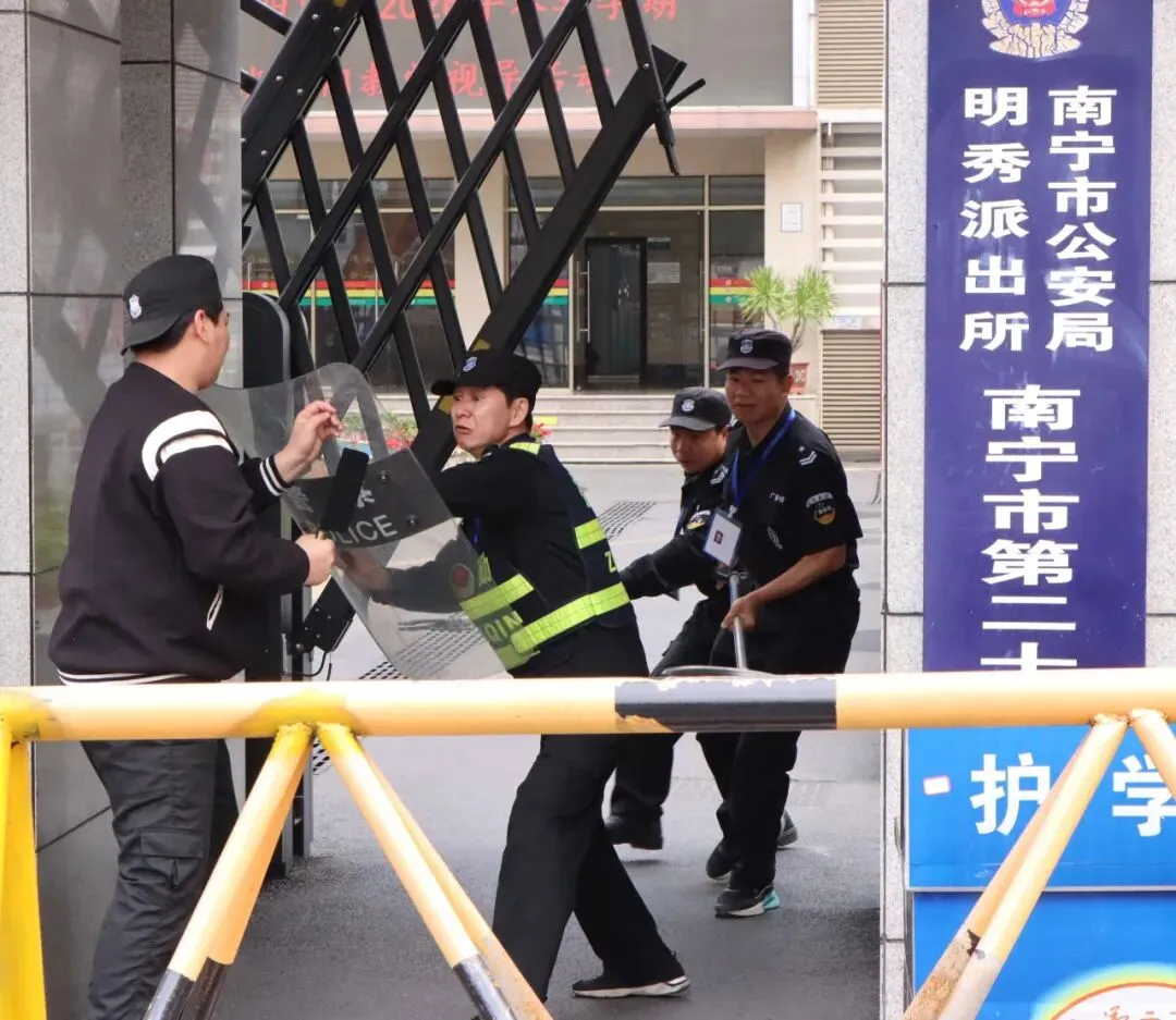 防暴演练筑防线 守好校园第一关 ——南宁市第二十四中学开展门岗防暴演练