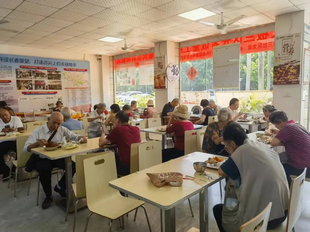 老人们在大板三社区长者饭堂用餐