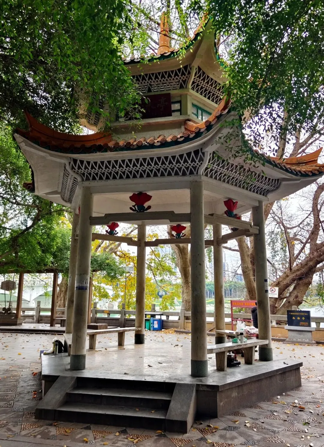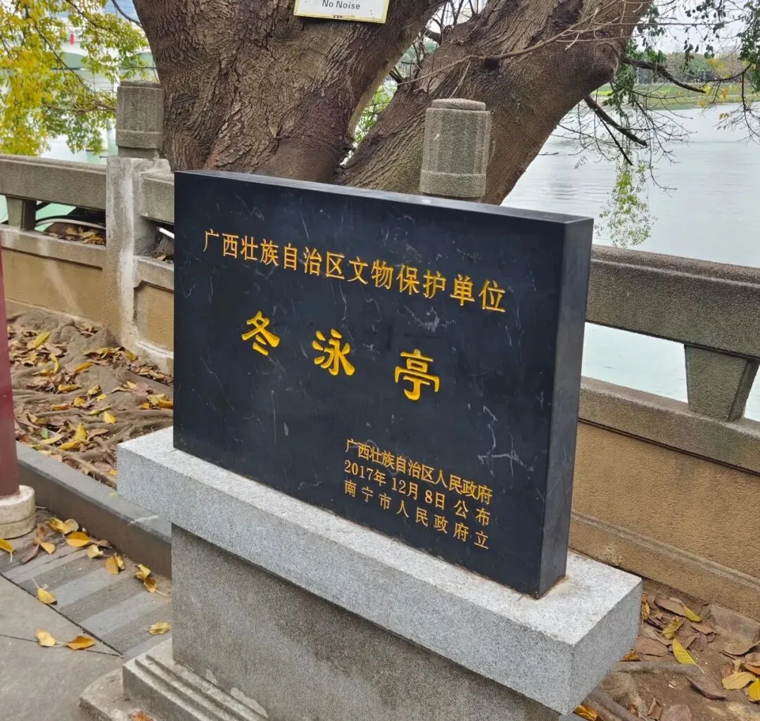 1958年1月,毛主席在广西南宁主持召开“南宁会议”期间,曾先后三次下到邕江游泳。为了纪念这一历史性时刻,南宁市在邕江岸边的江滨公园内修建了“冬泳亭”。