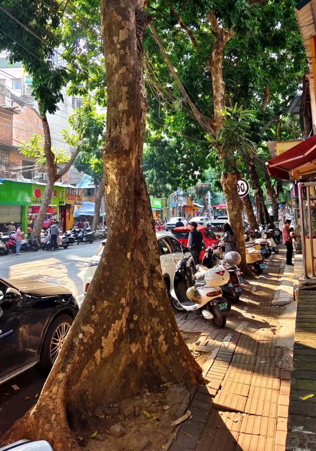 越南的街道绿化往往较为碎片化,缺乏南宁这种连贯的园林化步道。树干上可能钉着修车铺的招牌,树荫下塞满了塑料矮凳和咖啡杯。它不是一种普及的公共产品,而是民间社会的无心插柳,缺乏规划和投入。