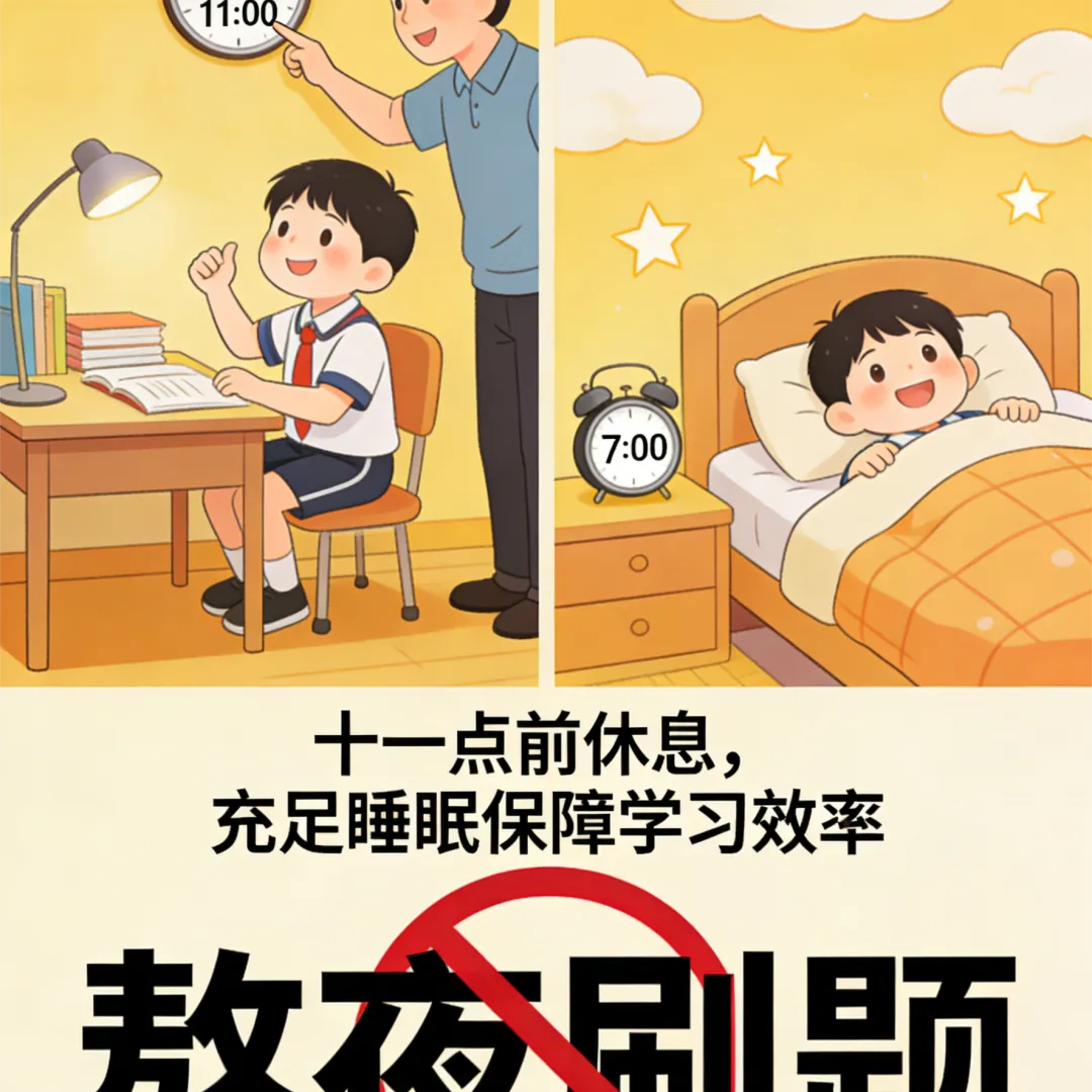 这一点我要特别提醒大家,初三最后阶段,有的孩子喜欢熬夜刷题,我认为这并不可取,其实睡眠充足了,第二天课堂效率才高。我会跟孩子说:“晚上熬一小时,白天昏睡一上午,这笔账划不来。我们要的是效率,不是耗时间。”