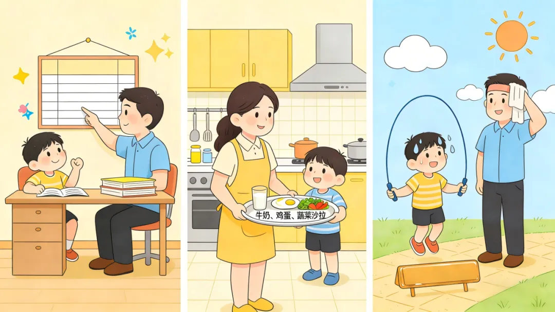 做好后勤保障是孩子高效学习的基础。生活上,规律作息,结合孩子课程制定时间表,保证充足睡眠;饮食上,注重营养均衡,多准备富含蛋白质、维生素的食物,避免油腻辛辣,为孩子提供充沛精力。此外,合理安排娱乐放松时间,比如每周组织孩子锻炼,做到劳逸结合,让孩子在张弛有度的节奏中保持学习状态。