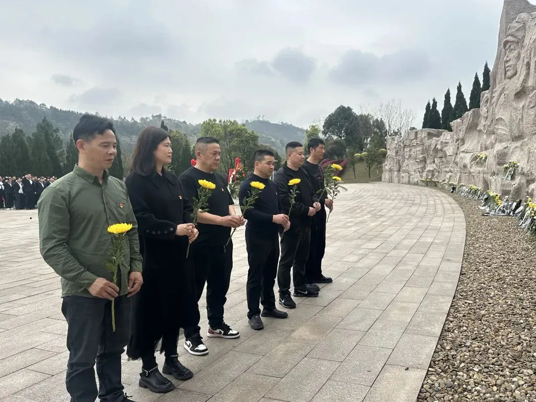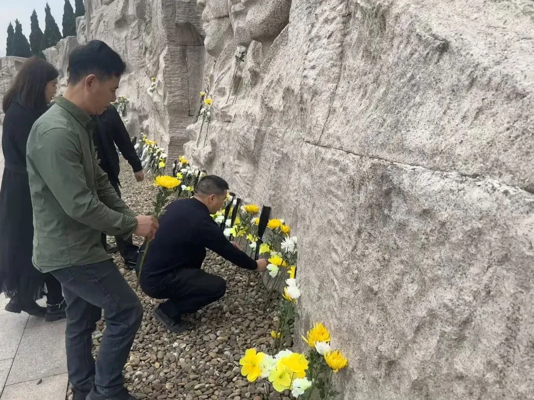 馆内参观结束后,众人前往纪念林凭吊广场整齐肃立、集体默哀,依次敬献黄菊,以简朴仪式缅怀先烈、告慰忠魂。